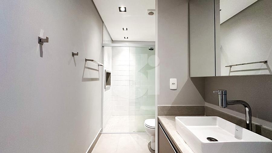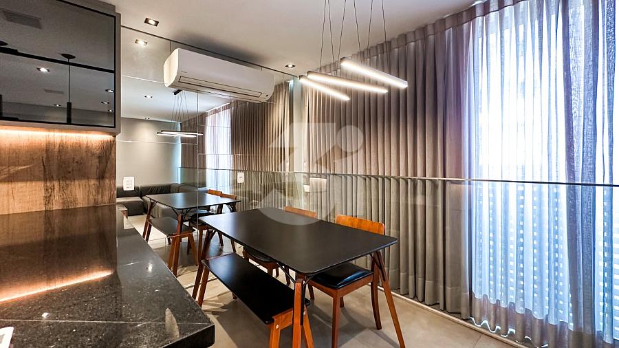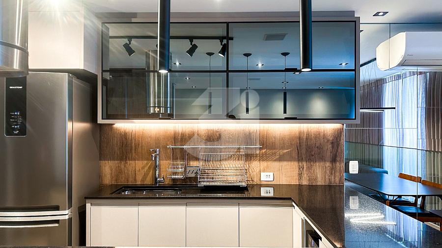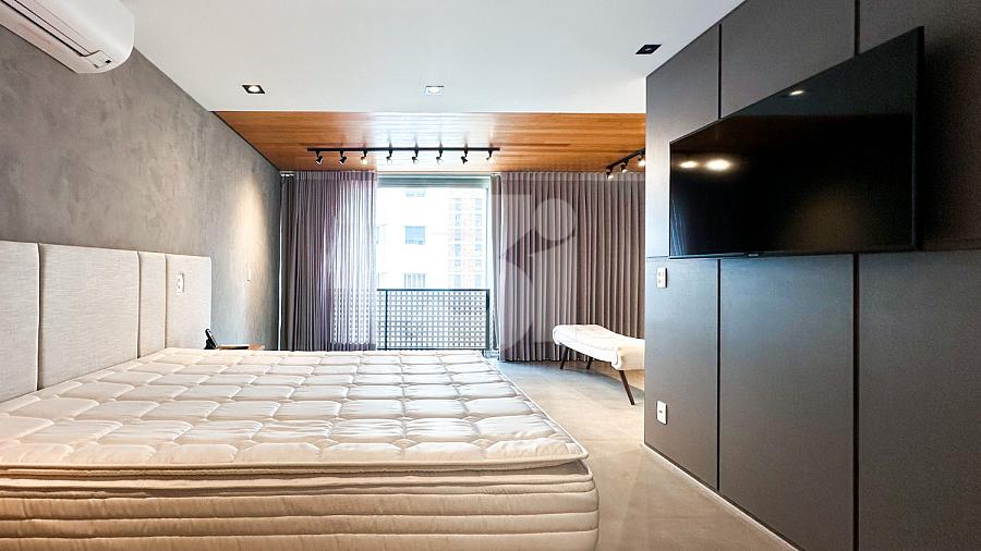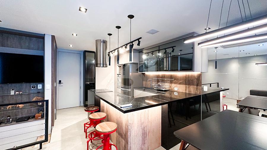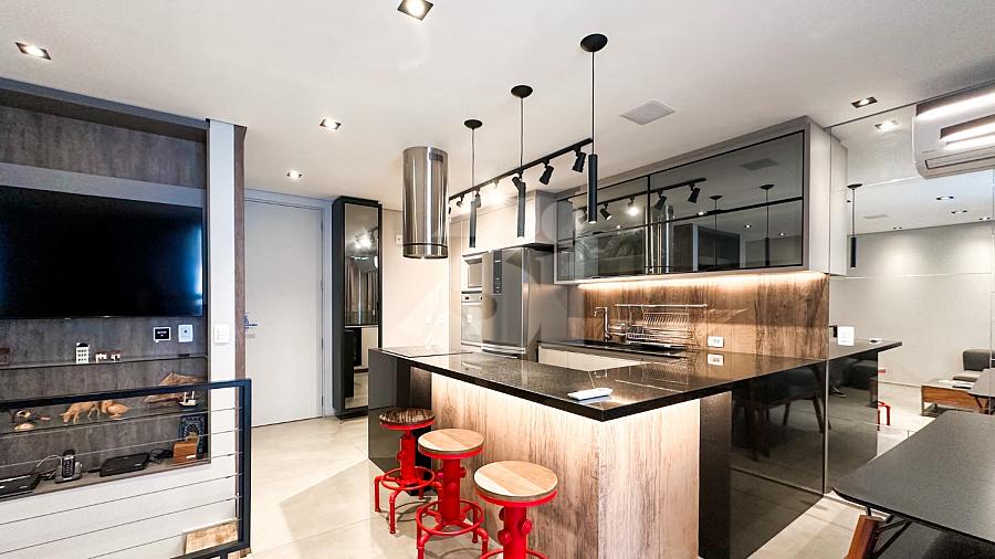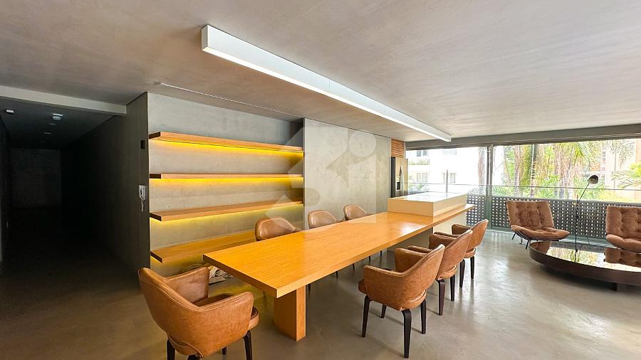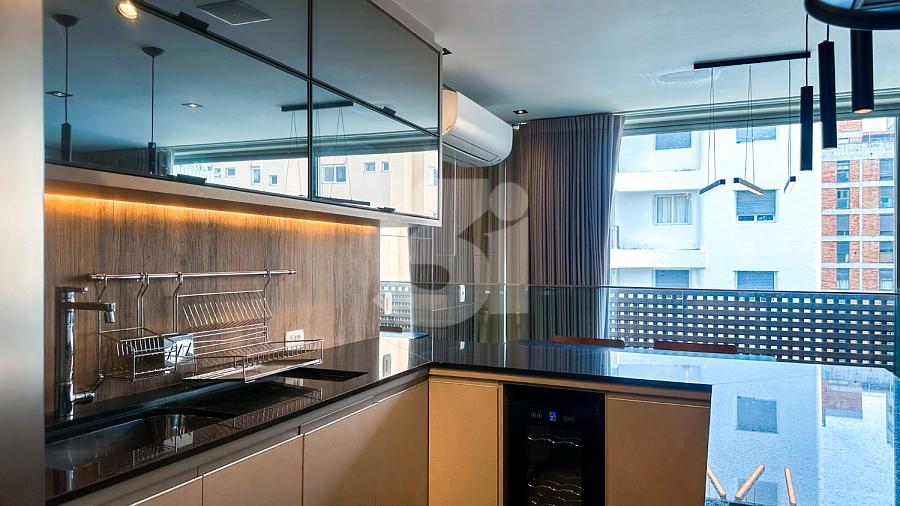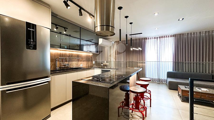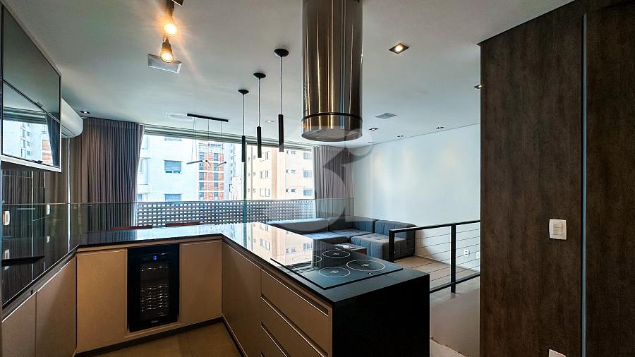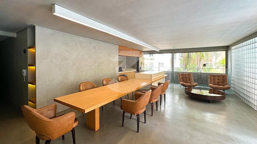 Apartamento duplex reformado e moderno em um dos edifícios mais cobiçados do Itaim Bibi, com assinatura de Arthur Casas Studio’s, localizado a poucas quadras do Parque Ibirapuera. O design da área social utiliza-se de diversos materiais em tons escuros para criar ambientes descolados e sofisticados. A cozinha, integrada ao living, é totalmente equipada com geladeira e lava-louças embutidas, além de ser repleta de armários Florense em tons de cinza. Há, também, um lavabo. O andar superior é composto de uma espaçosa suíte e home office com armários planejados Florense na mesma cor das paredes. O apartamento tem projeto de iluminação e som, acabamentos em mármore Armani, TV instalada na sala e na suíte e depósito privativo no apartamento e na garagem. O empreendimento destaca-se por sua arquitetura assinada e design contemporâneo exclusivo, além de oferecer segurança total, infraestrutura completa e serviços diferenciados, incluindo lobby, sistema de concierge, business center, espaço gourmet, área fitness, piscina com solarium, sauna, bicicletário, gerador elétrico para áreas comuns, dois elevadores, Wi-Fi nas áreas comuns, aquecimento central para água nas áreas privativas e comuns e circuito interno de segurança.