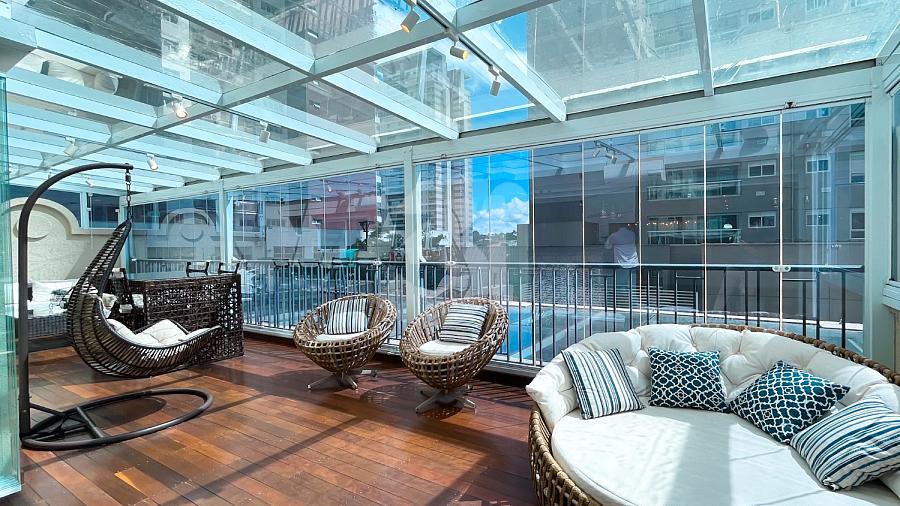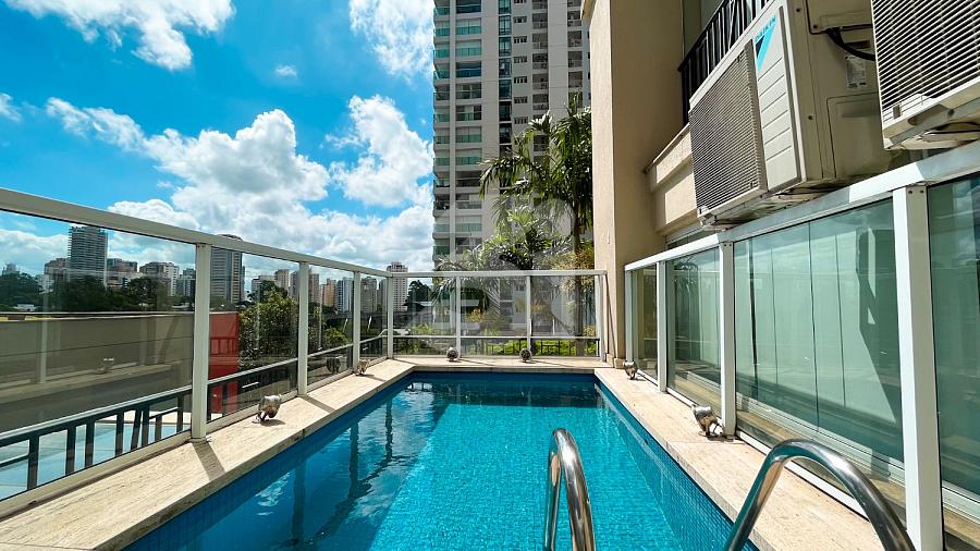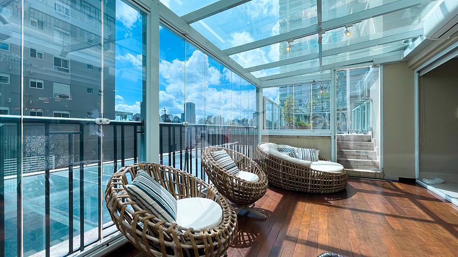 Garden para venda no Campo Belo, com 280m², 3 dormitórios, sendo 3 suítes, home office, living amplo, ar condicionado em todos os ambientes, cozinha planejada, varanda panorâmica, espaço gourmet com churrasqueira, área externa e piscina privativa.