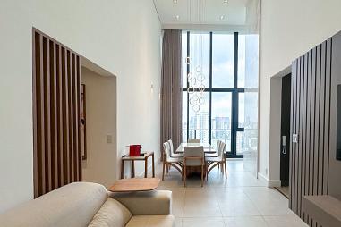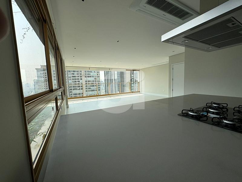 Apartamento semi mobiliado para locação no Itaim Bibi, com 147m², 3 dormitórios, sendo 3 suítes, sala para dois ambientes, elevador privativo e varanda integrada com uma vista privilegiada.