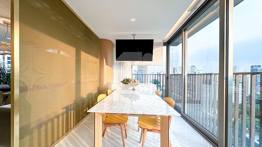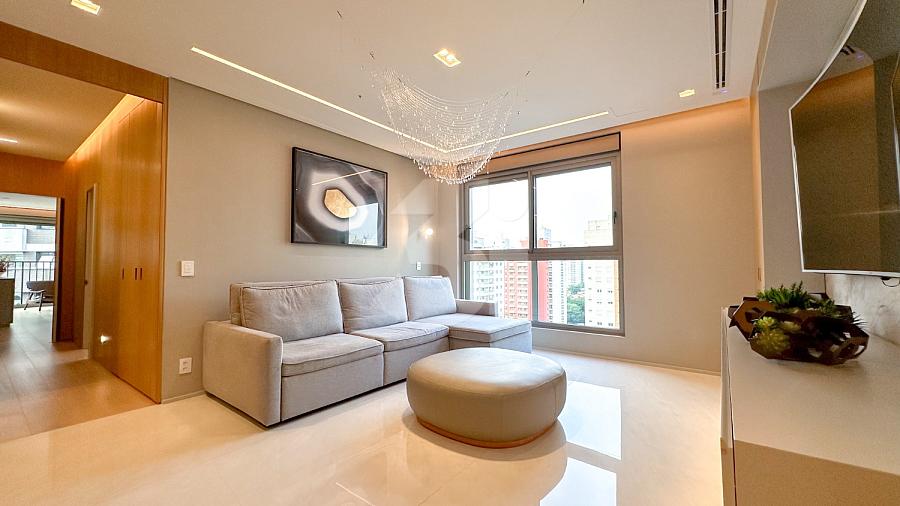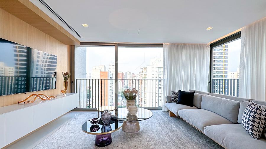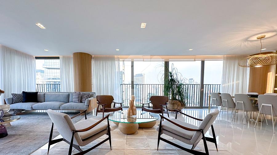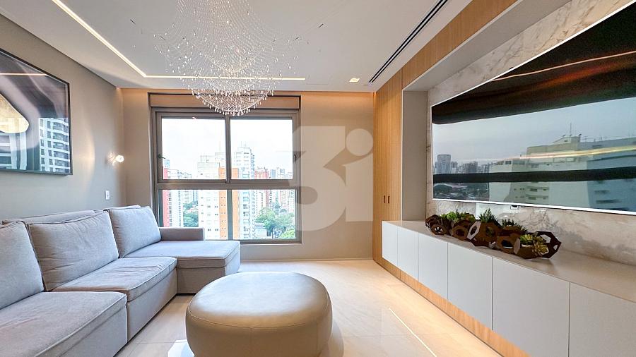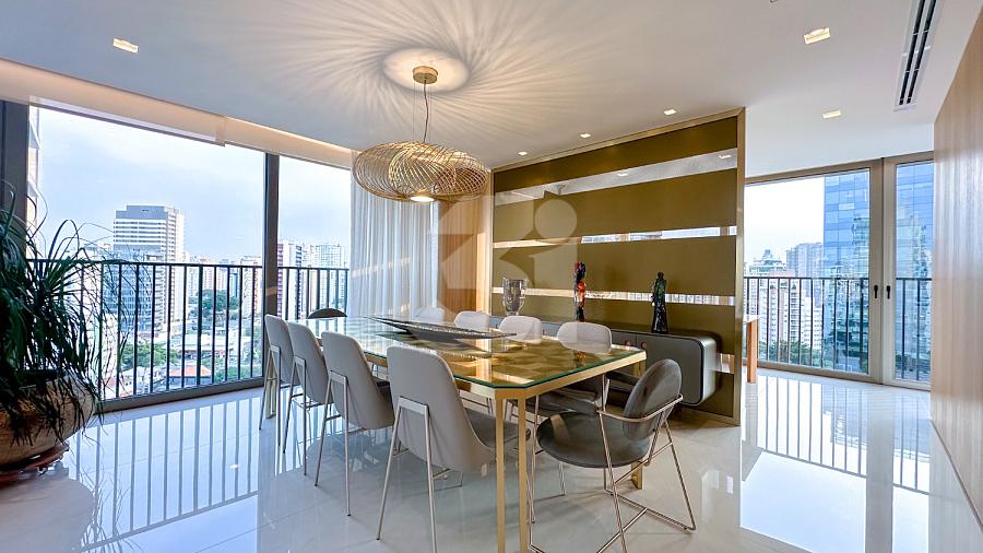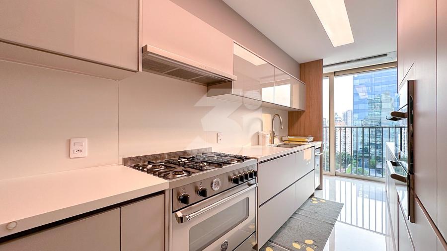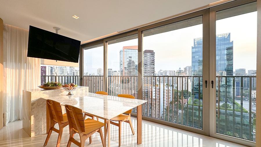 Apartamento para venda, próximo à Faria Lima, com 2 dormitórios, sendo 2 suítes e sala de TV, (planta original com 3 suítes), 4 banheiros, cozinha planejada, living integrado e uma vista privilegiada da Faria Lima.
