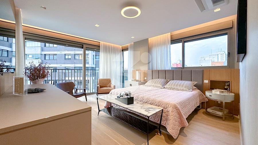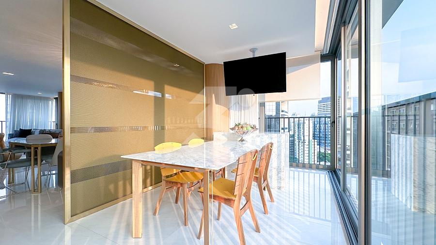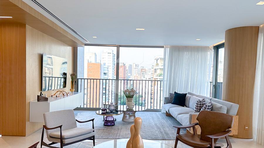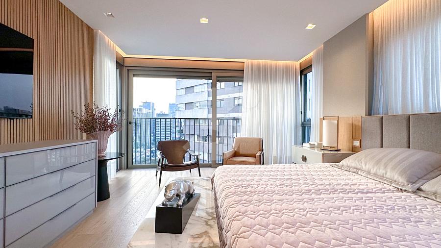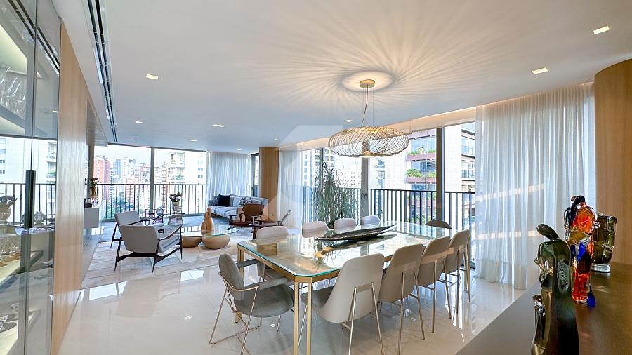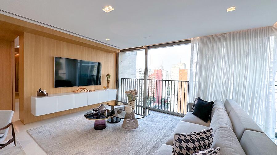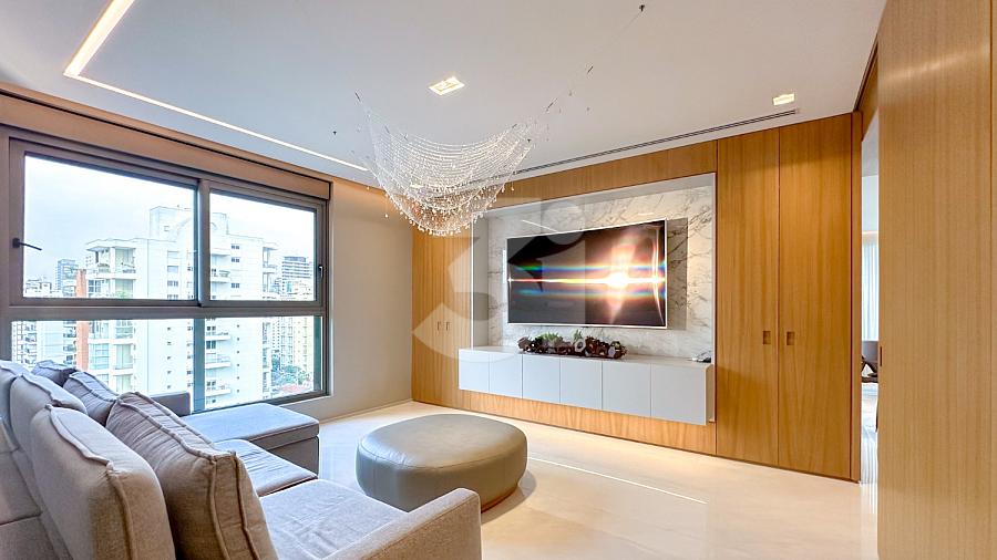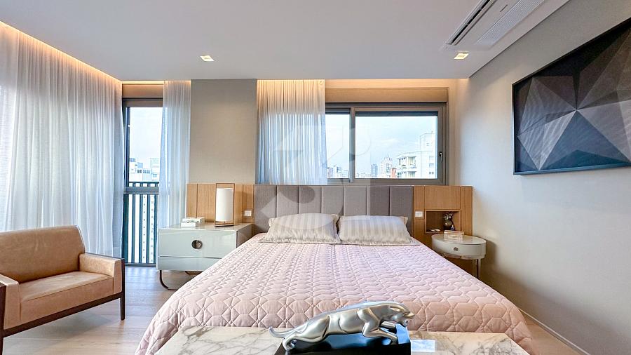 Apartamento para venda, próximo à Faria Lima, com 2 dormitórios, sendo 2 suítes e sala de TV, (planta original com 3 suítes), 4 banheiros, cozinha planejada, living integrado e uma vista privilegiada da Faria Lima.