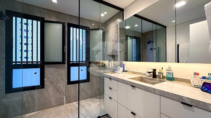 Apartamento à venda no Brooklin com 250m², 3 suítes, 5 banheiros, dependencia de funcionaria sendo suite, cozinha, sala de estar, jantar e varanda com churrasqueira.