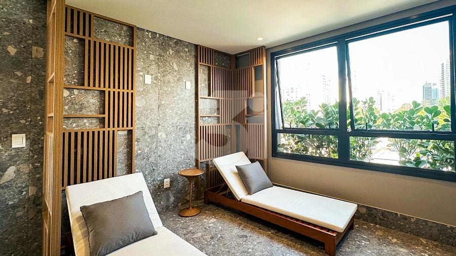 O condomínio possui uma ótima infraestrutura, contando com 3 vagas de garagem, academia, salão de festas, elevador, espaço gourmet, piscina, sauna, sala de jogos e segurança com monitoramento 24 horas.