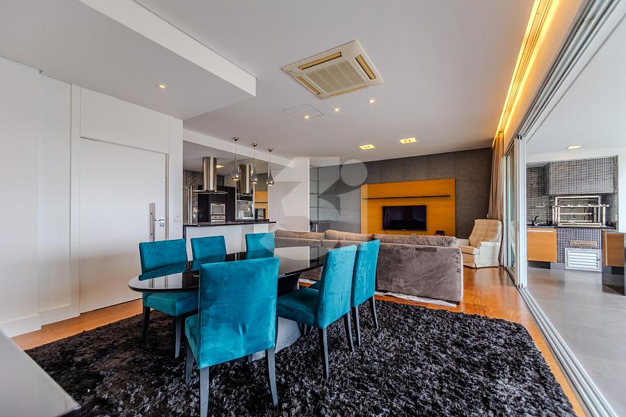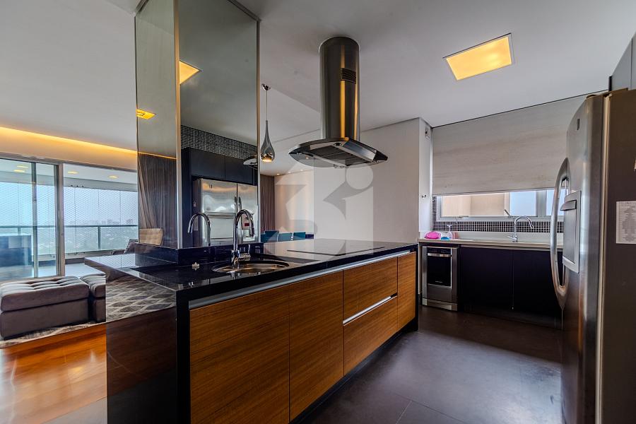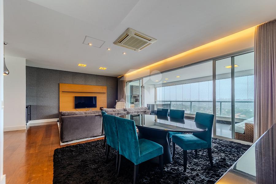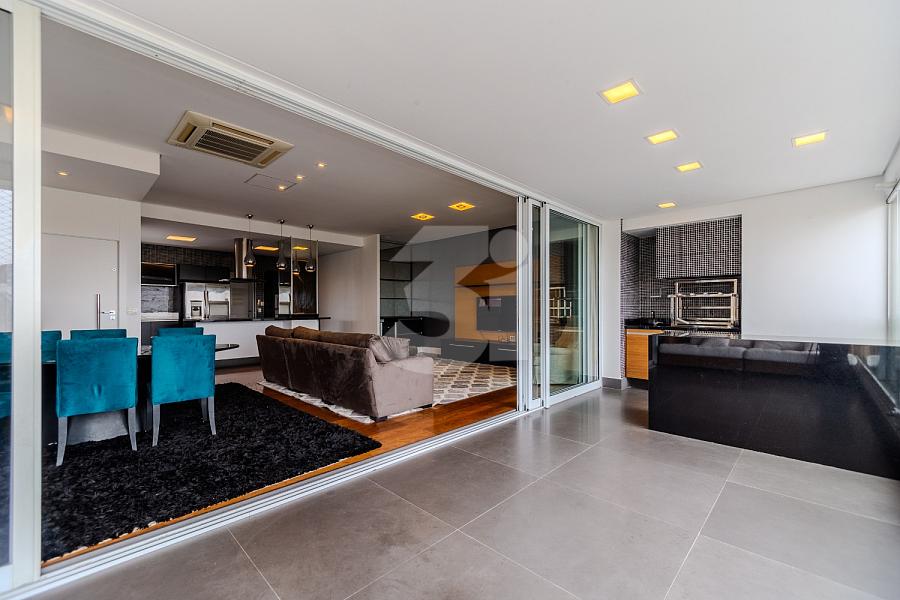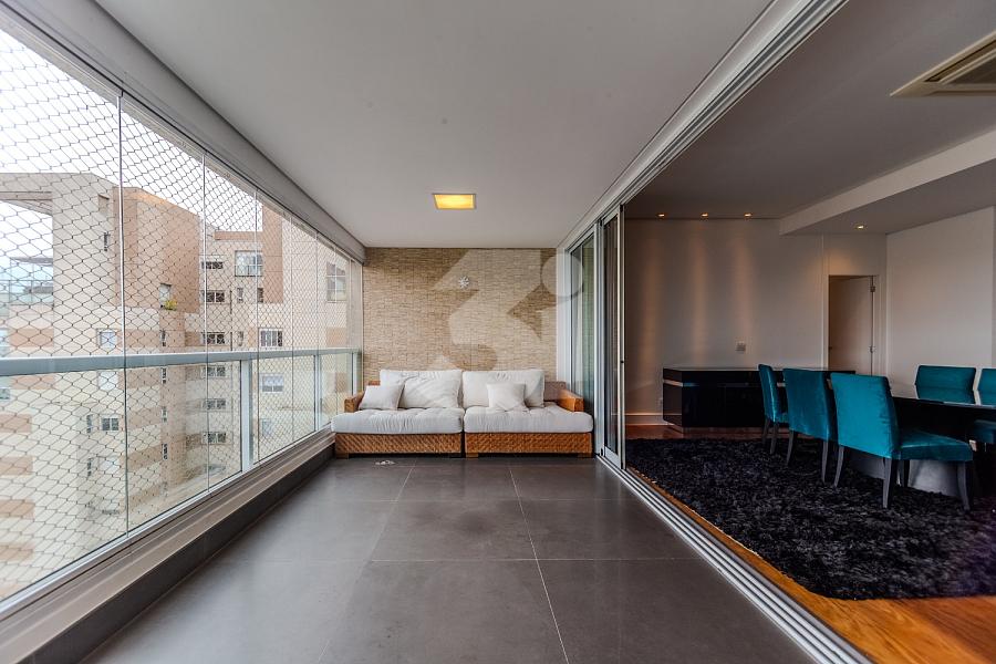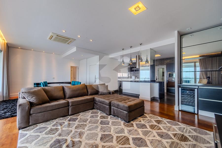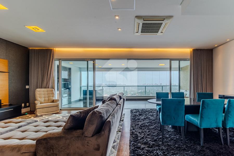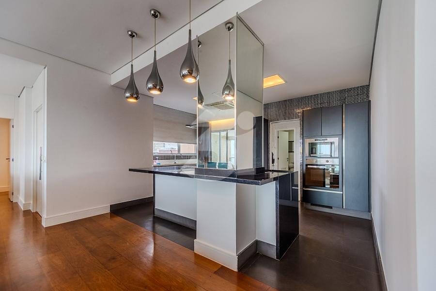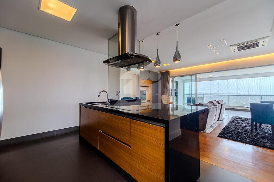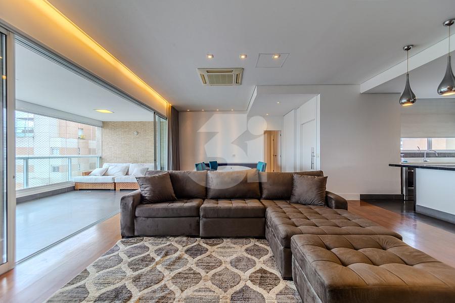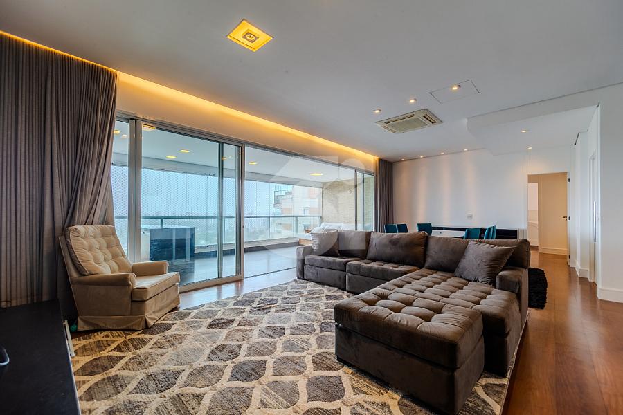 Apartamento para locação no Campo Belo, com 180m², 2 dormitórios, sendo 1 suíte, cozinha com armários embutidos, living amplo, varanda integrada e uma linda vista livre privilegiada.