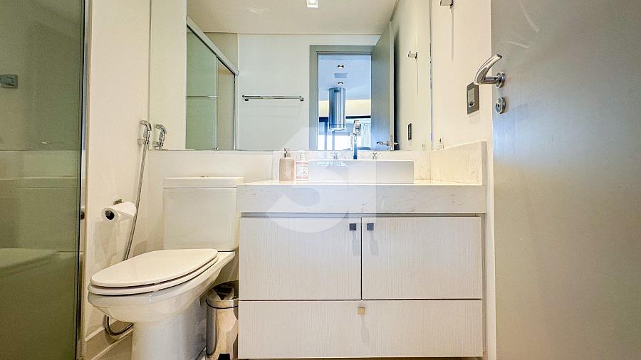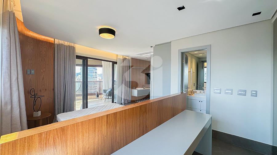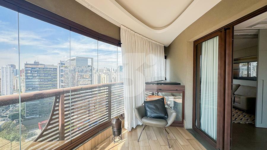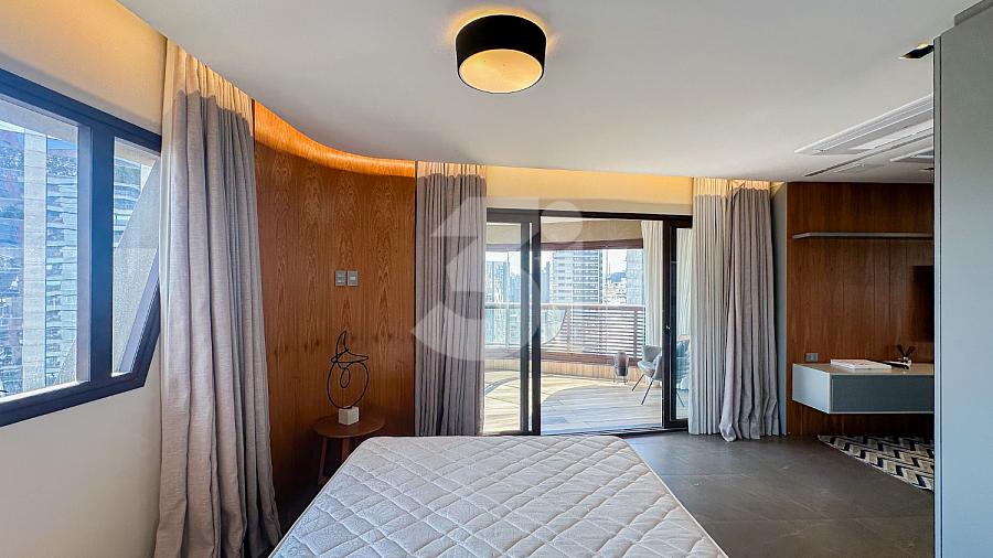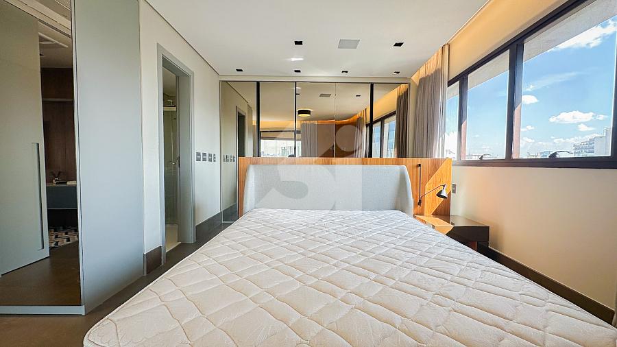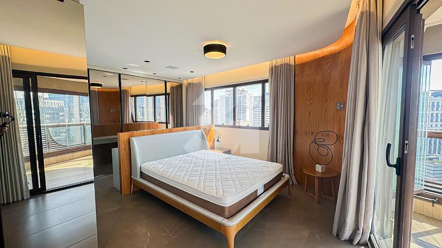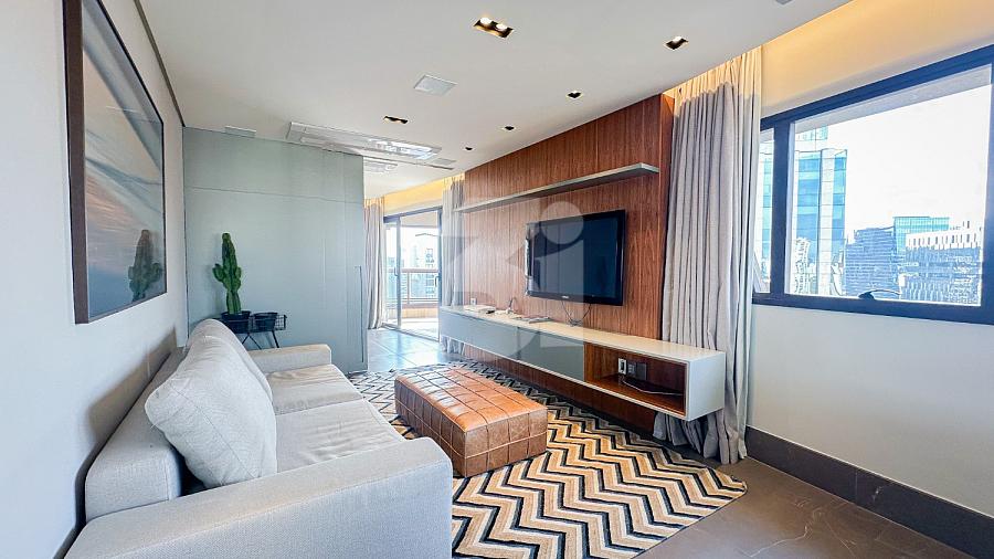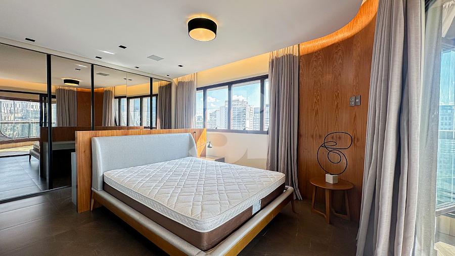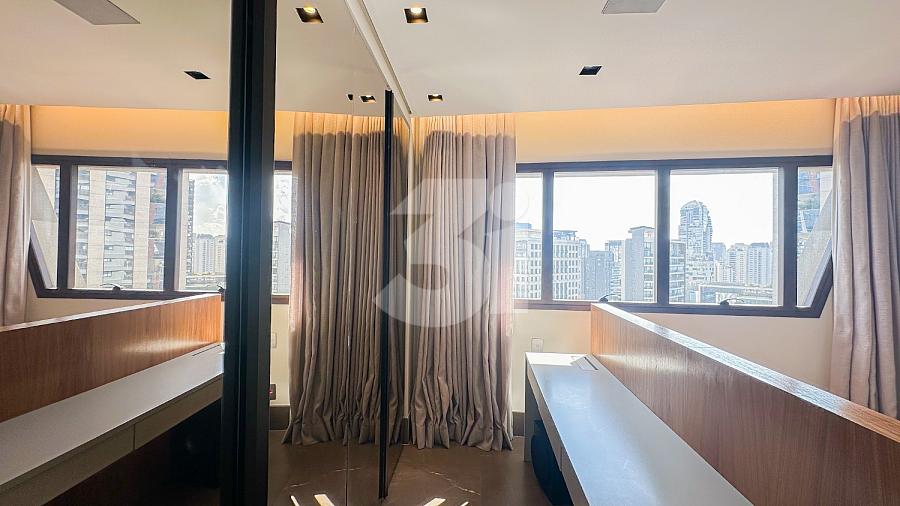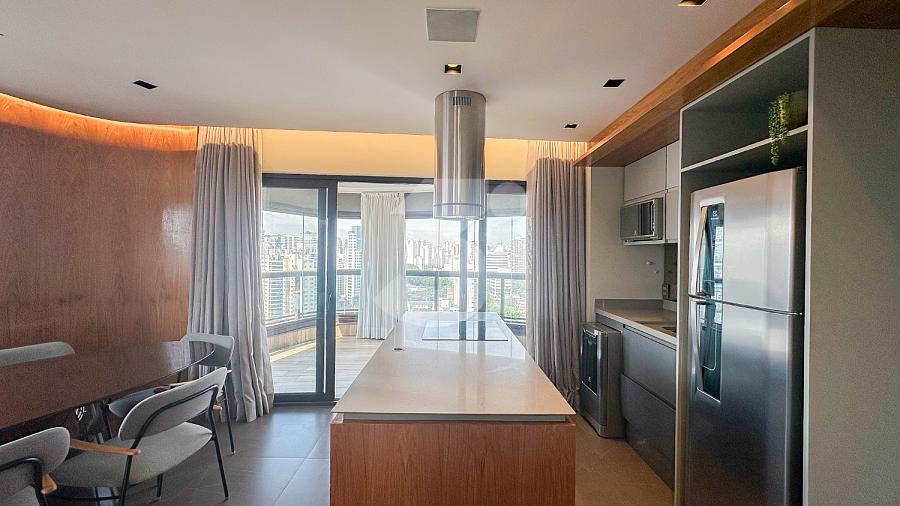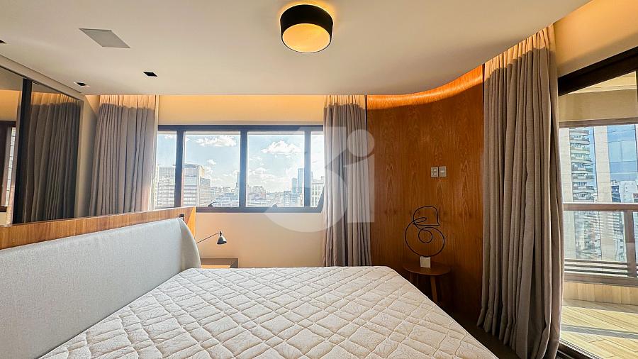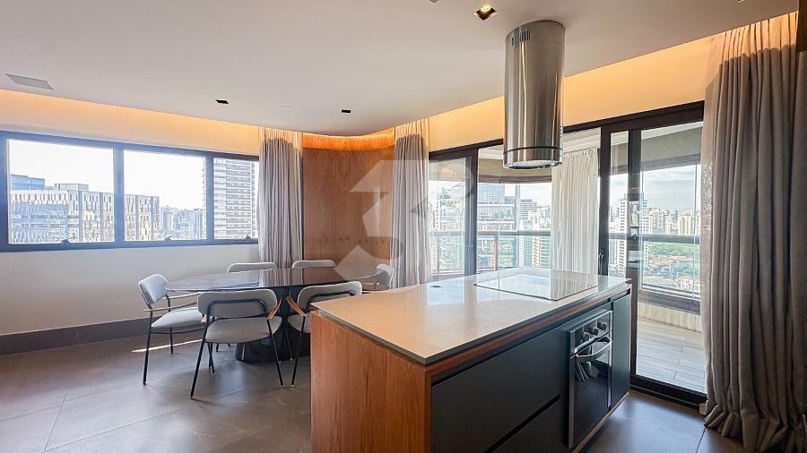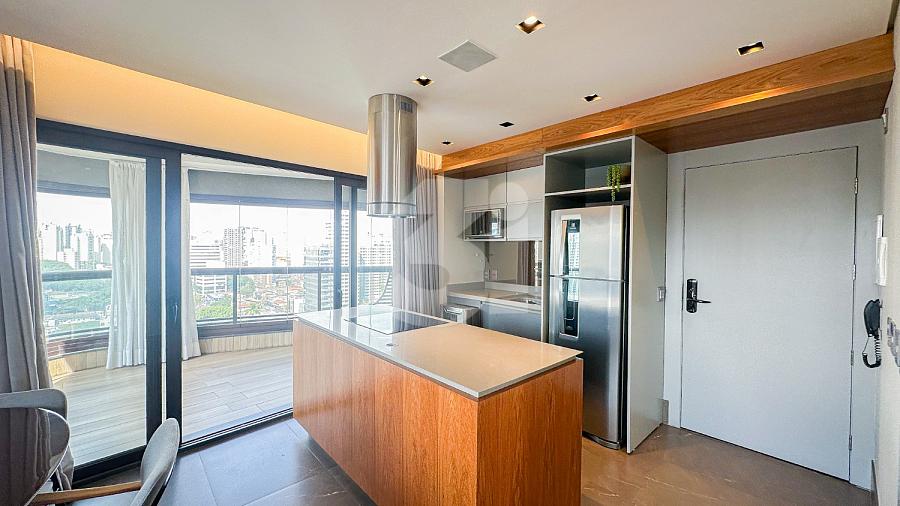 Apartamento para Locação na Vila Olímpia, com 1 dormitório sendo 1 suíte, lavabo, cozinha americana, fechadura eletrônica, varanda com vista privilegiada e 2 vagas de garagem.