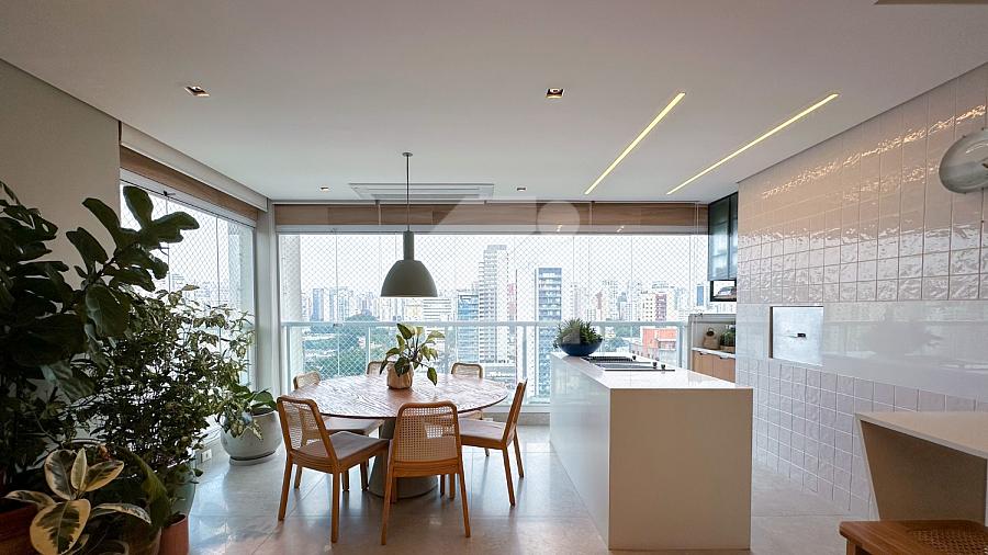 Apartamento para venda na Vila Olímpia, com 155m², completamente reformado, 3 dormitórios, sendo 1 suíte, living integrado, cozinha americana, varanda gourmet e uma vista privilegiada.