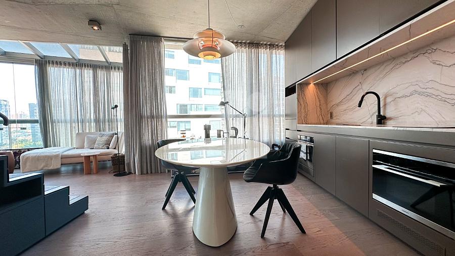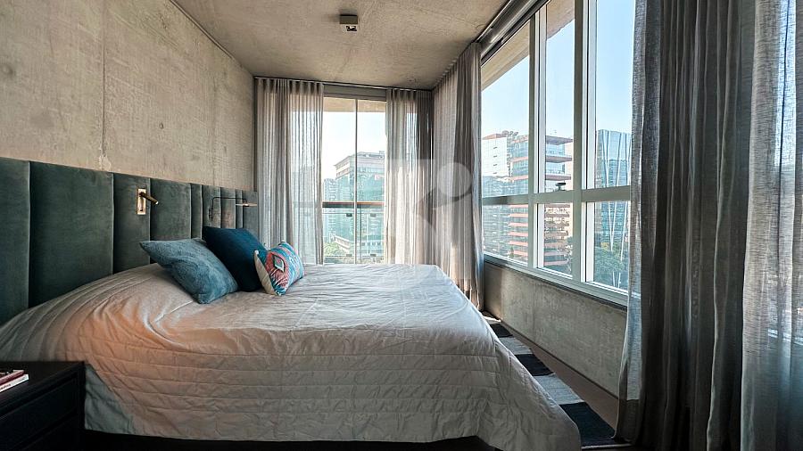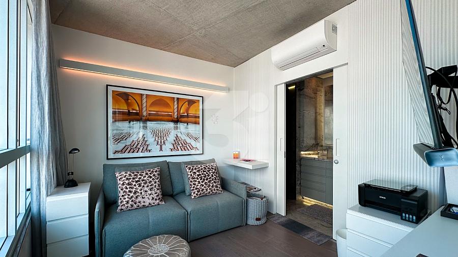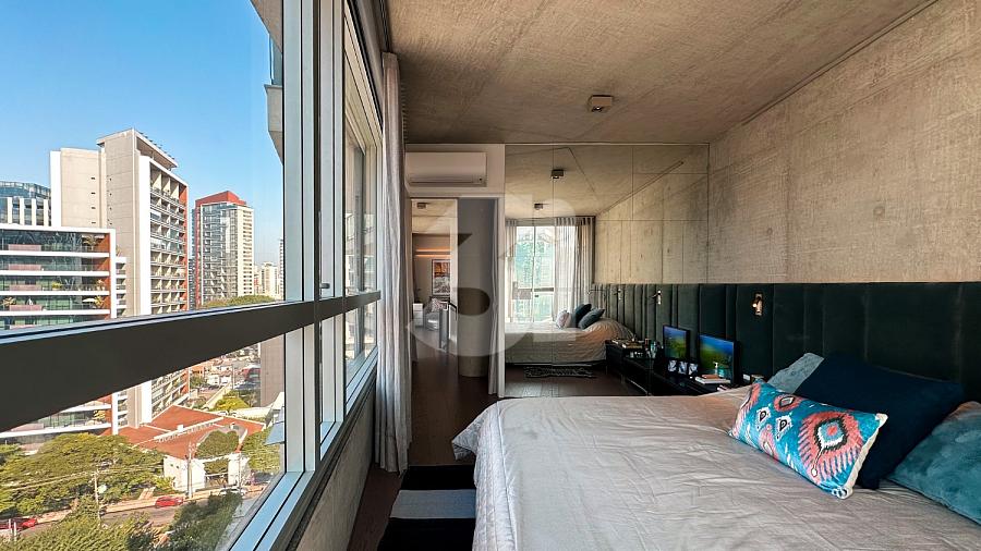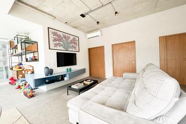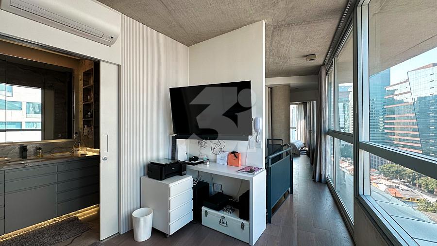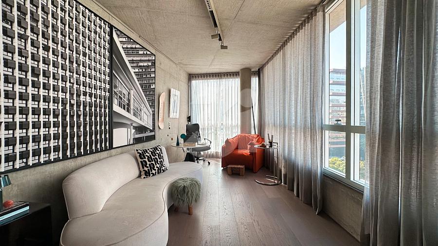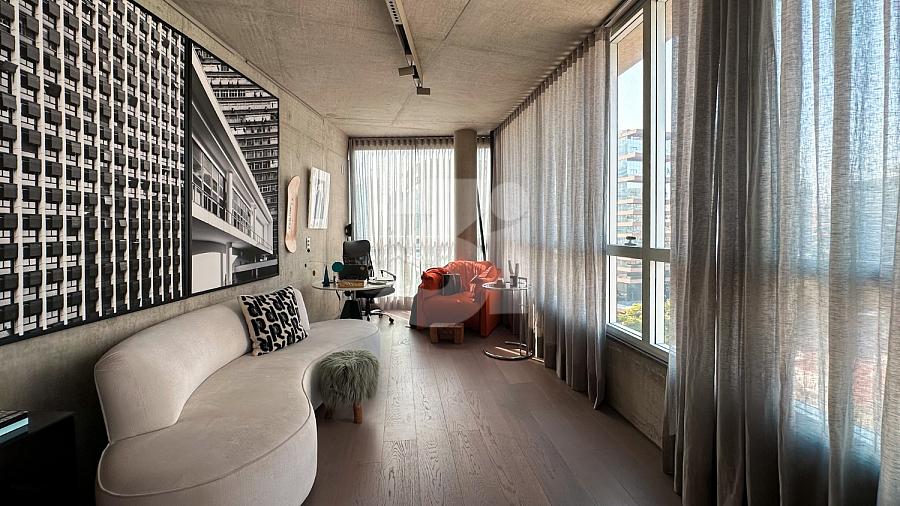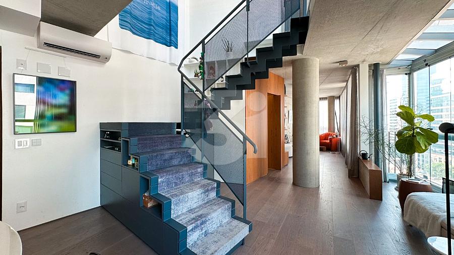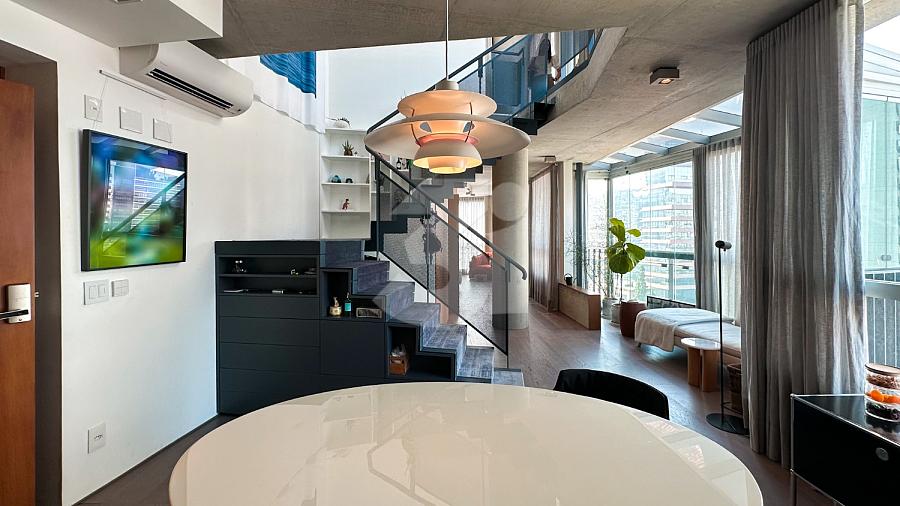 Apartamento Duplex para venda no Itaim Bibi, com 113m², com 1 suíte e uma sala de TV, living amplo, cozinha integrada, home office e varanda com uma vista privilegiada.