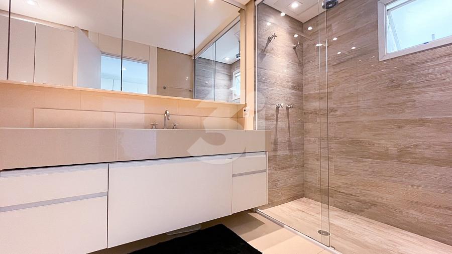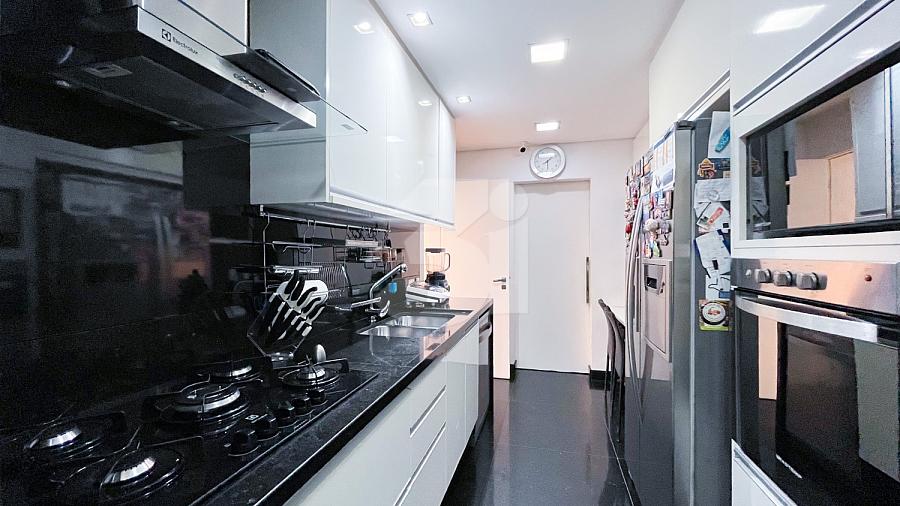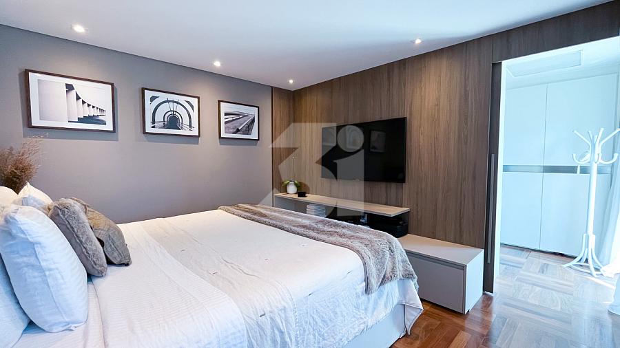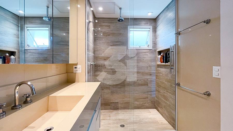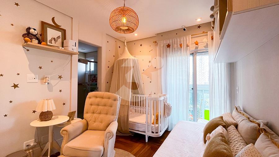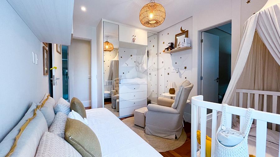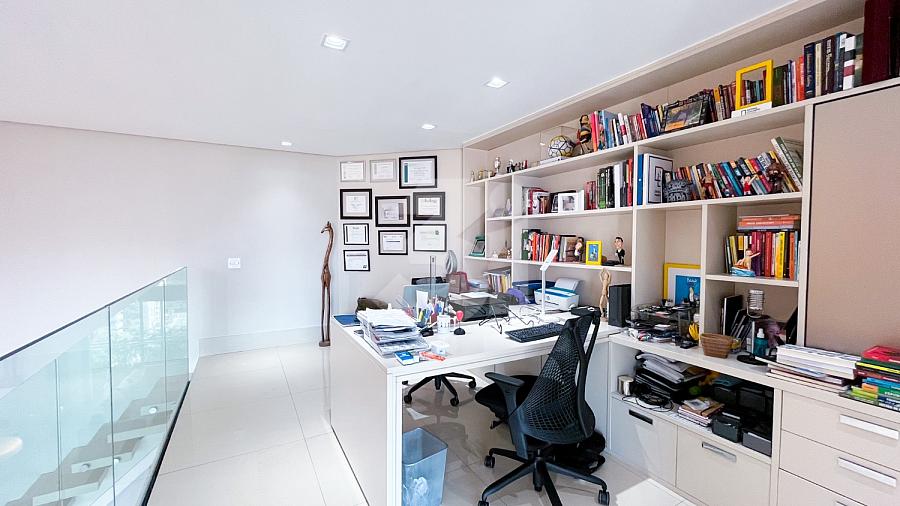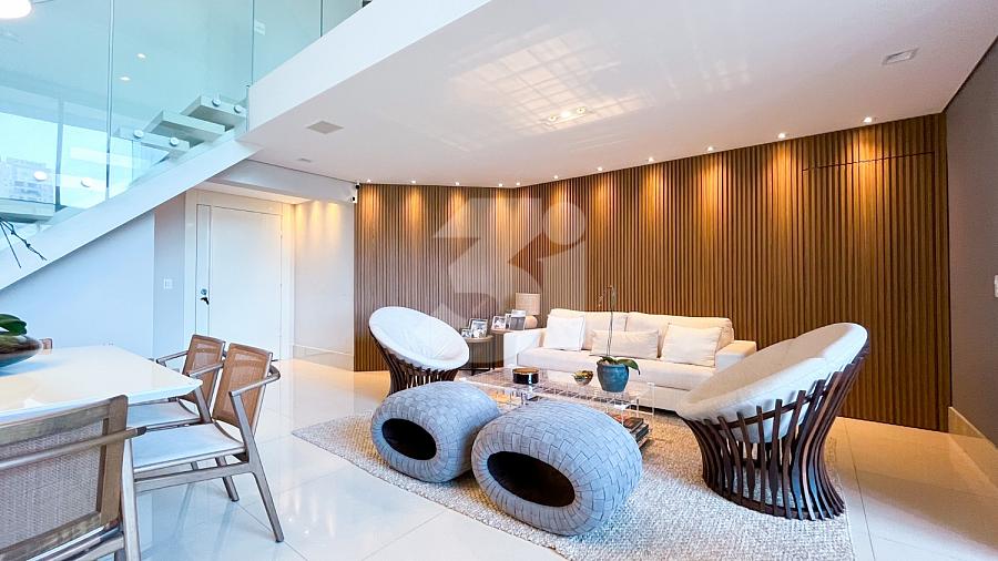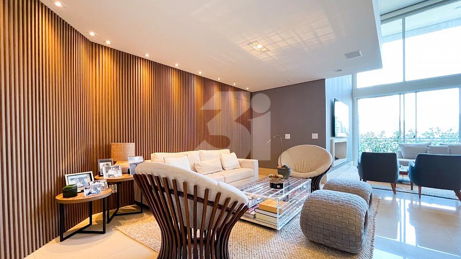 Apartamento para venda no Brooklin, com 210m², pé-direito duplo, mezanino com home office, 3 dormitórios, sendo 2 suítes, 5 banheiros, 1 lavabo, suíte máster com banheiro sr e sra, living amplo, cozinha com armários planejados e varanda com uma vista panorâmica.