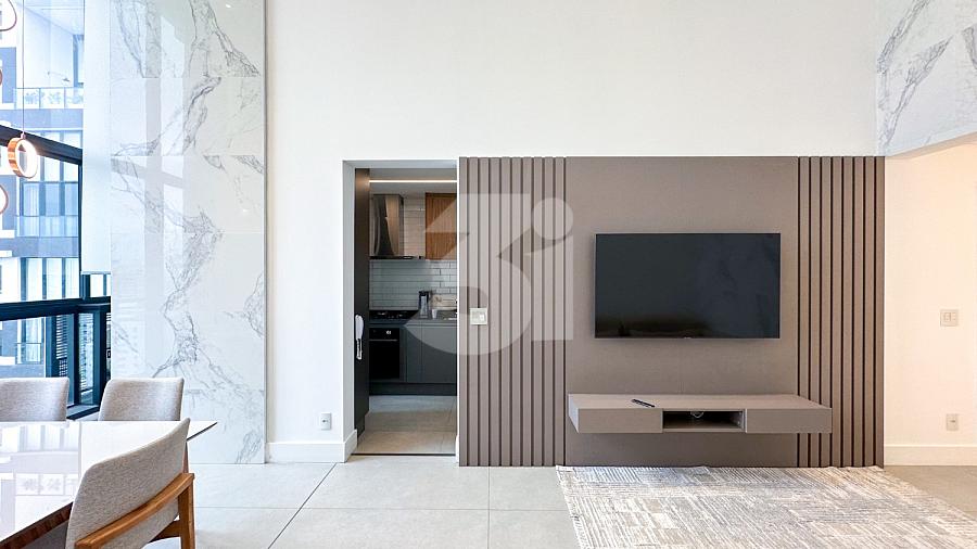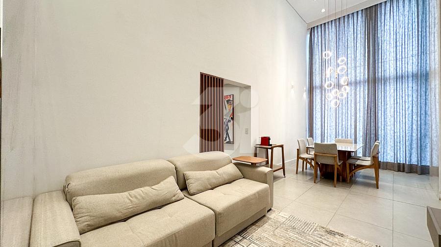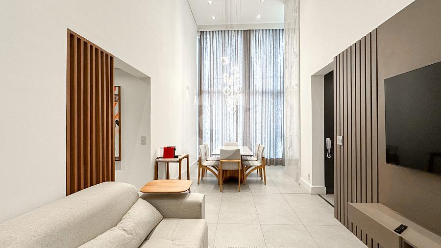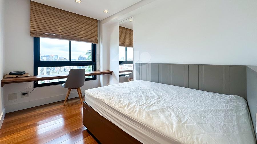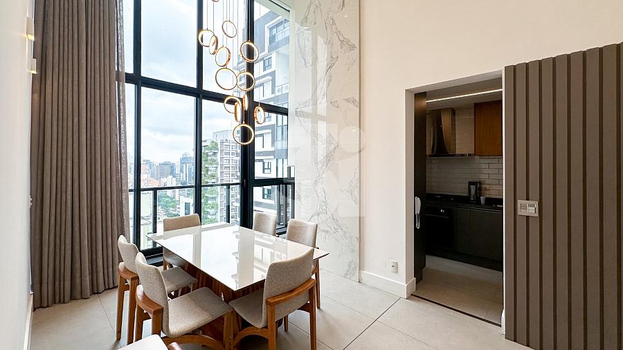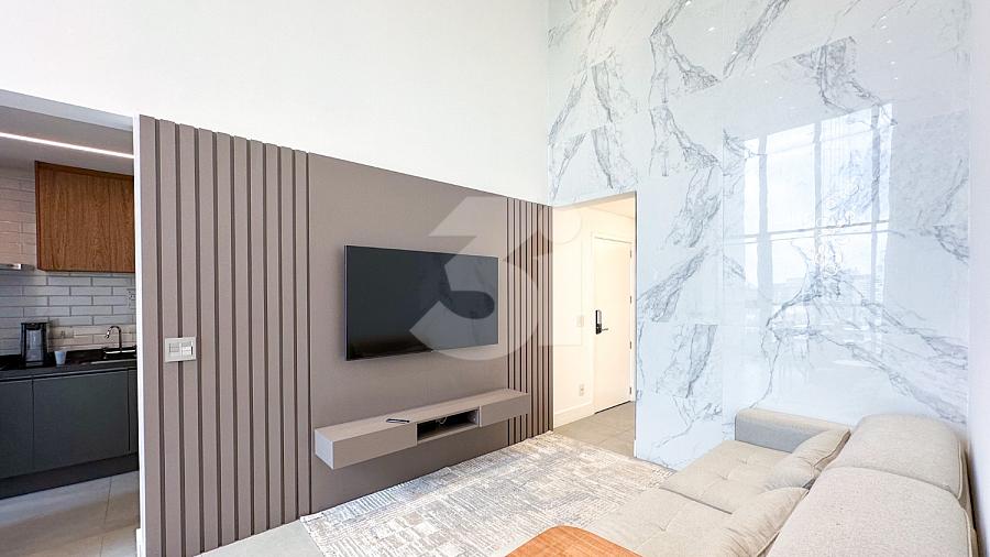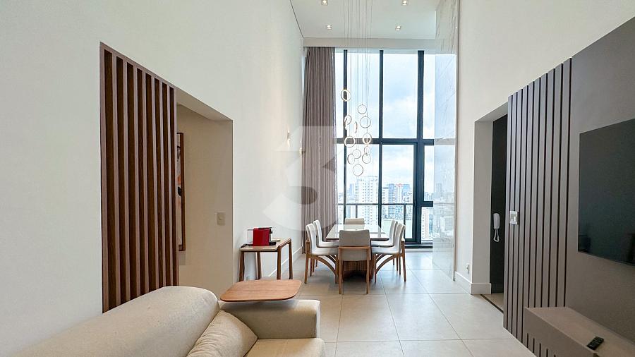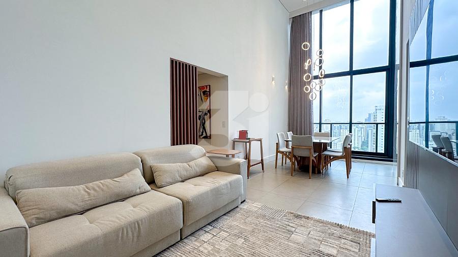 Apartamento para locação na Vila Olímpia, completamente reformado com 90m², 2 dormitórios, sendo 2 suítes, living amplo com pé direito duplo, varanda integrada com churrasqueira e uma vista privilegiada.