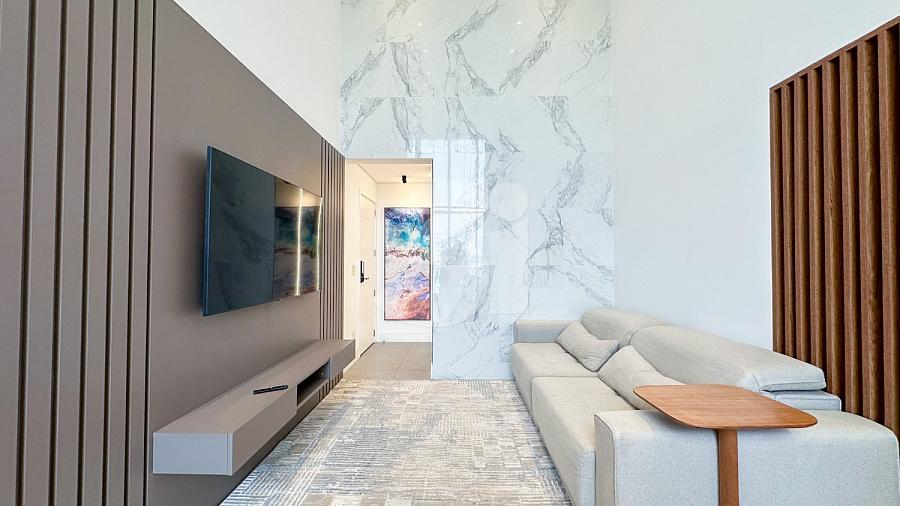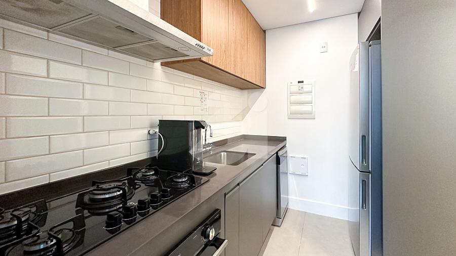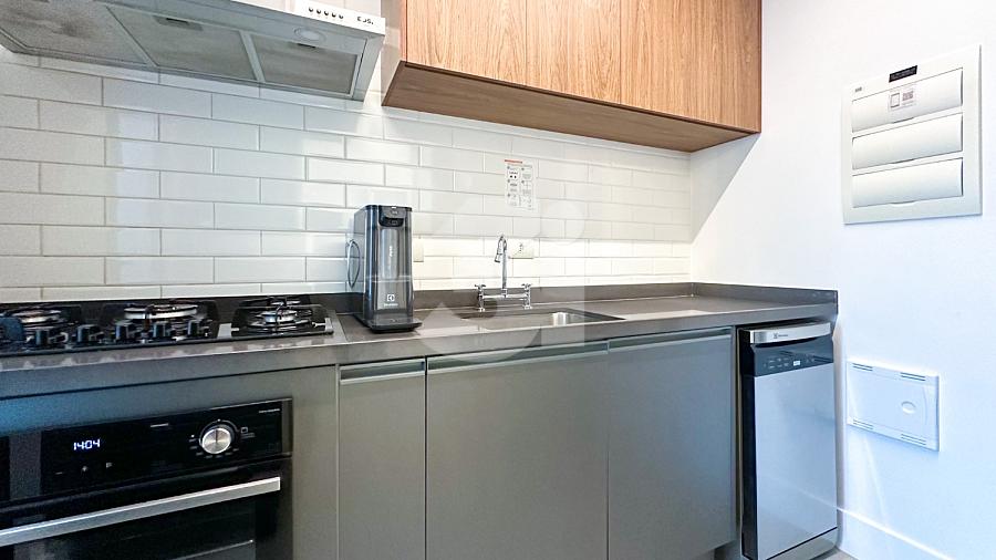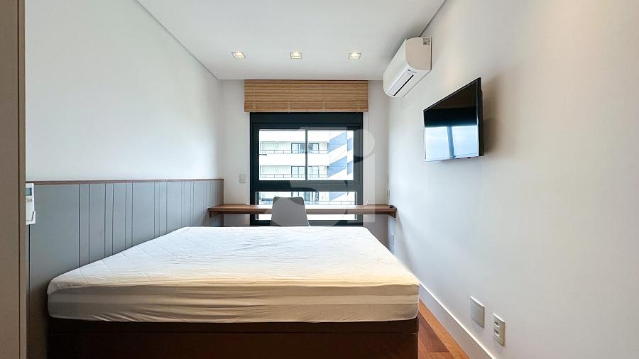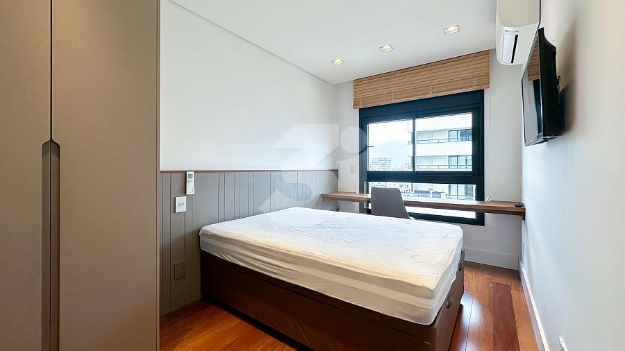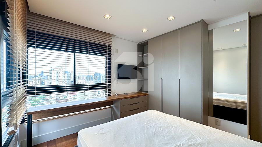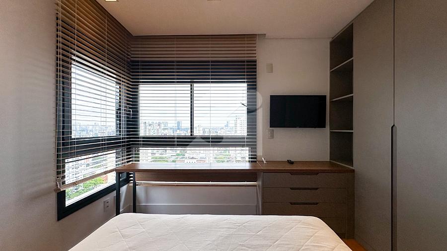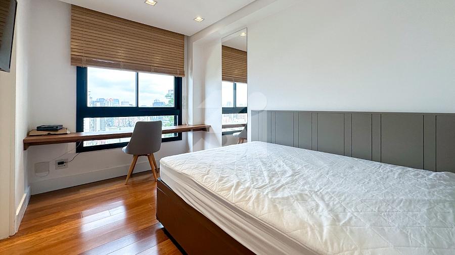 Apartamento para locação na Vila Olímpia, completamente reformado com 90m², 2 dormitórios, sendo 2 suítes, living amplo com pé direito duplo, varanda integrada com churrasqueira e uma vista privilegiada.