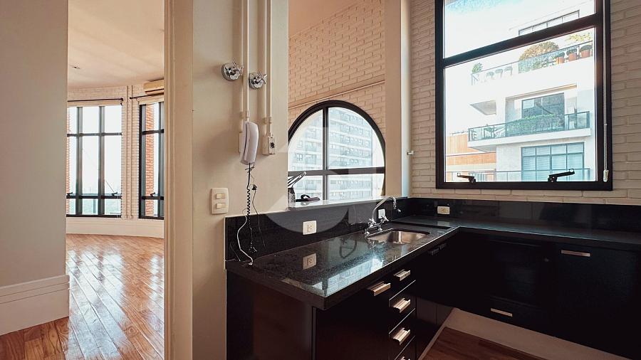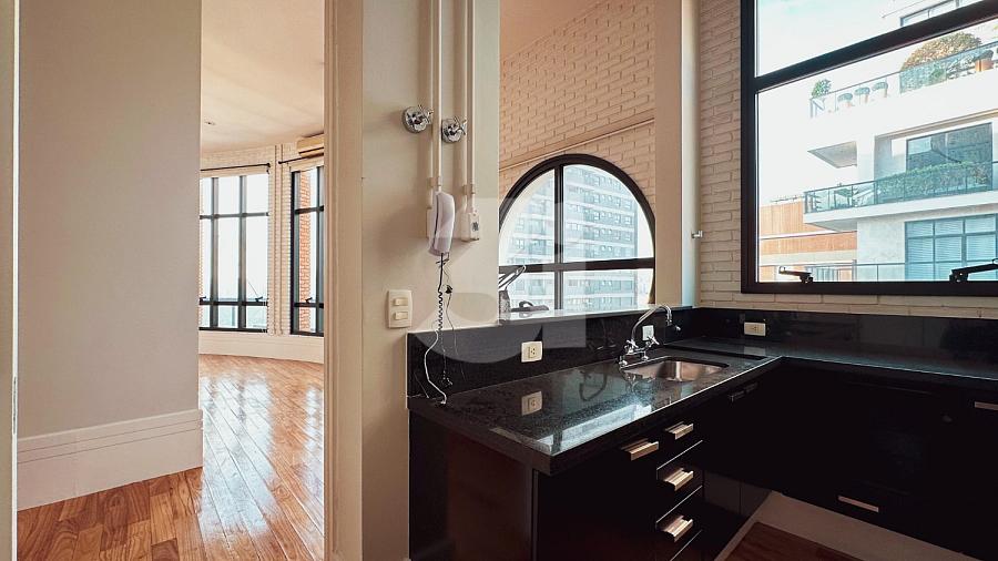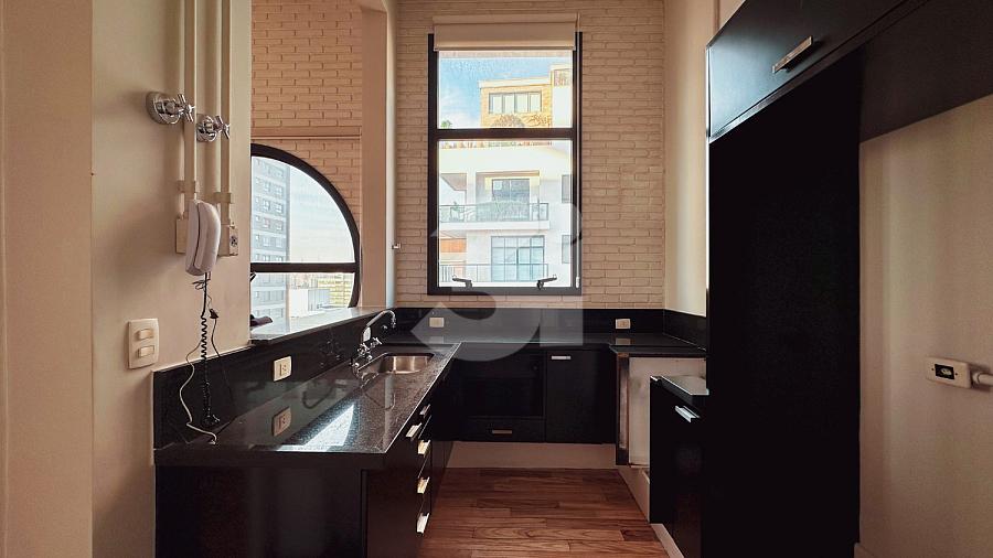 Apartamento para venda e locação no Itaim Bibi, com 122m², living amplo com pé-direito alto, 2 suítes estaçosas, closet, cozinha americana e varanda com uma vista privilegiada.