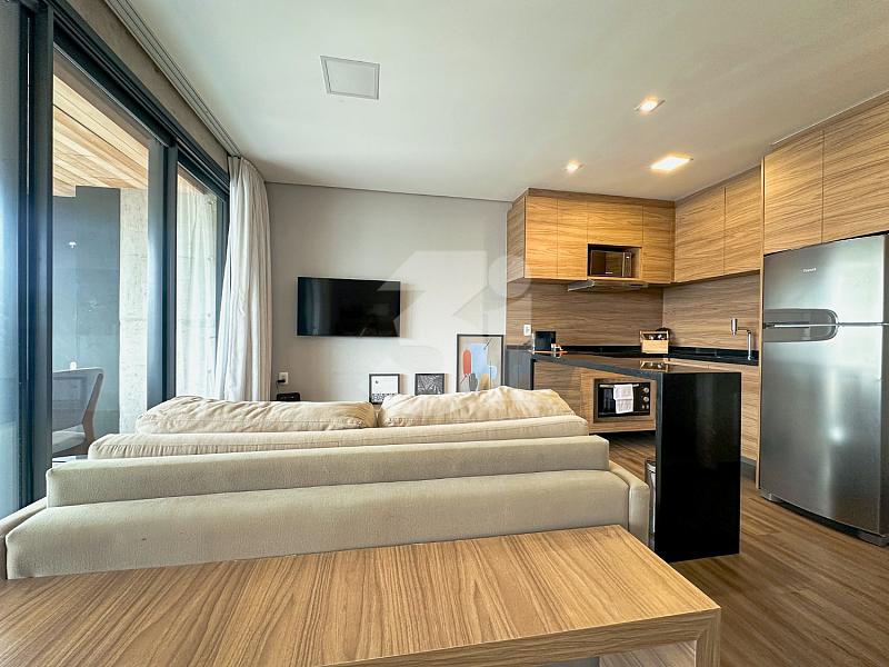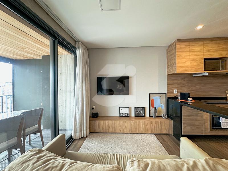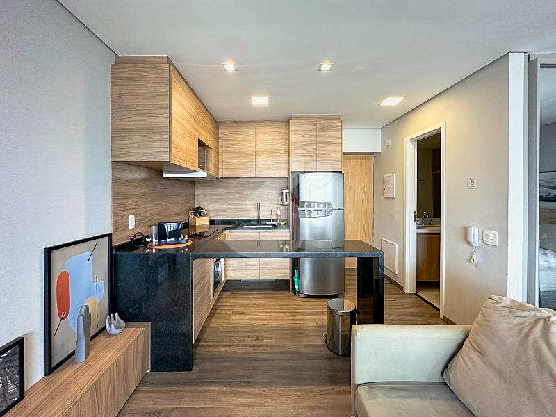 Apartamento à venda no Itaim Bibi, com 49m², 1 suite, cozinha planejada, varanda integrada e uma vista privilegiada.