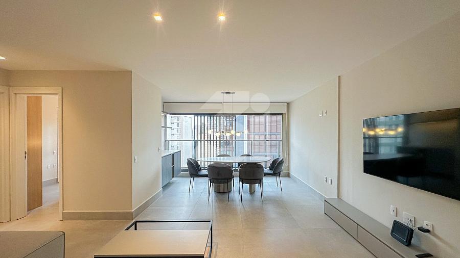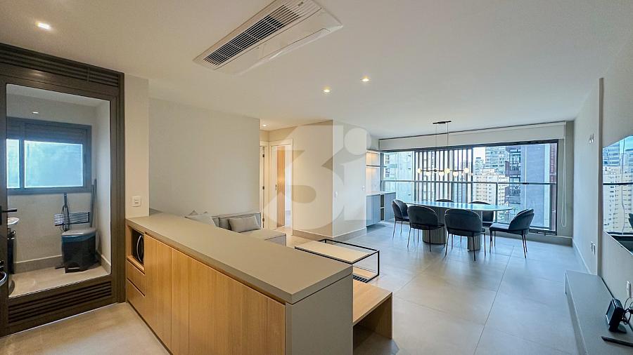 Apartamento para venda no Brooklin, com 3 dormitórios, sendo 3 suítes, 4 banheiros, cozinha com armários planejados, living amplo, área externa com churrasqueira, e uma vista privilegiada.