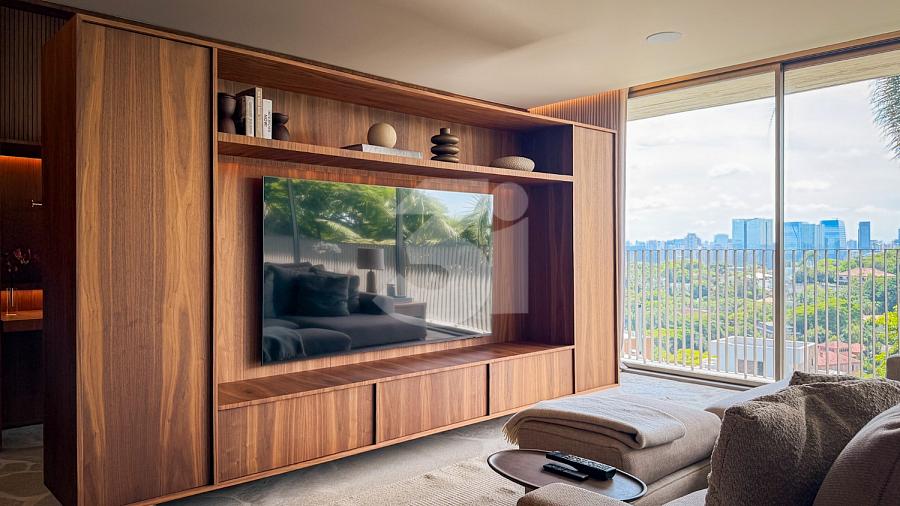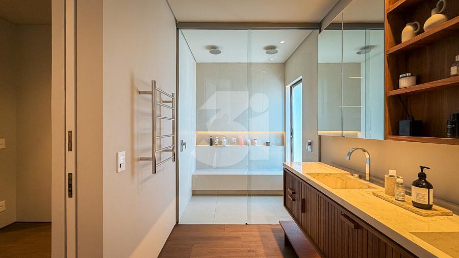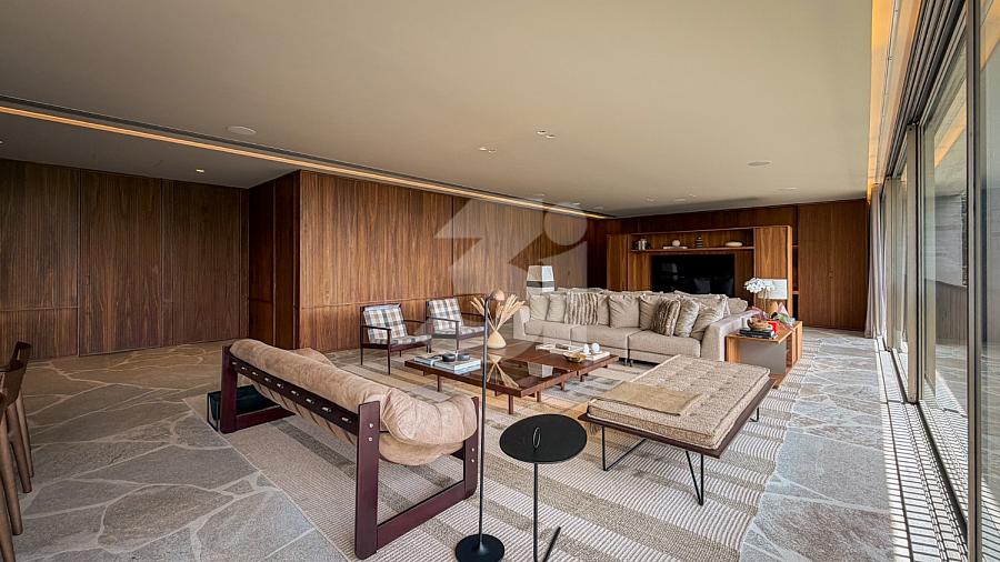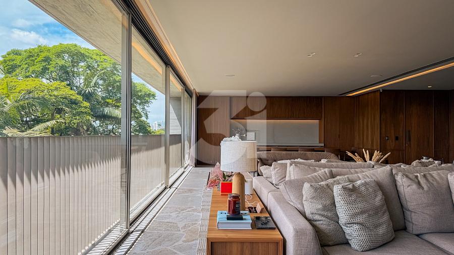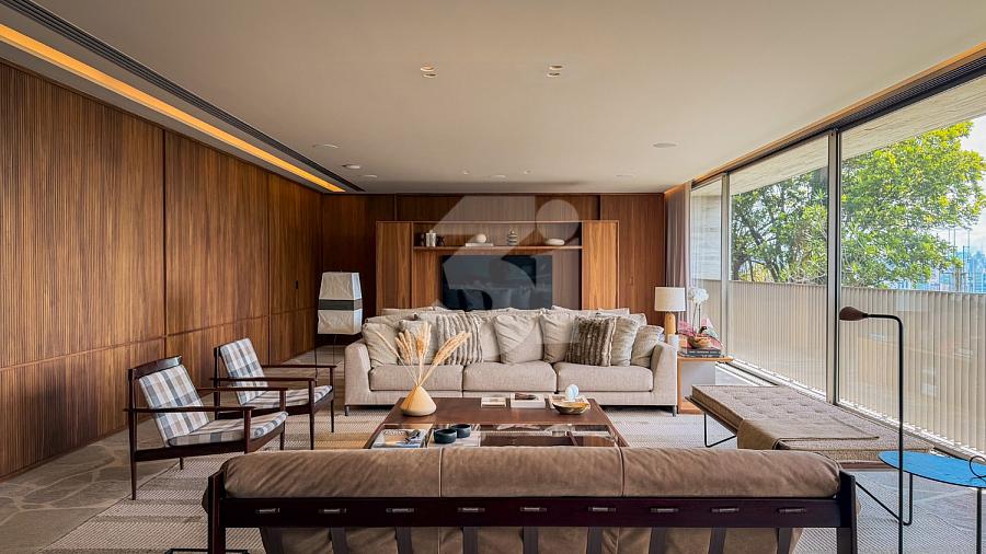 Raridade à venda no Cidade Jardim, com 266m, projeto de interiores assinado por Lucas Takaoka. São 3 suítes, sendo 1 master com closet, sala ampla com 3 ambientes + home office e vista livre permanente.