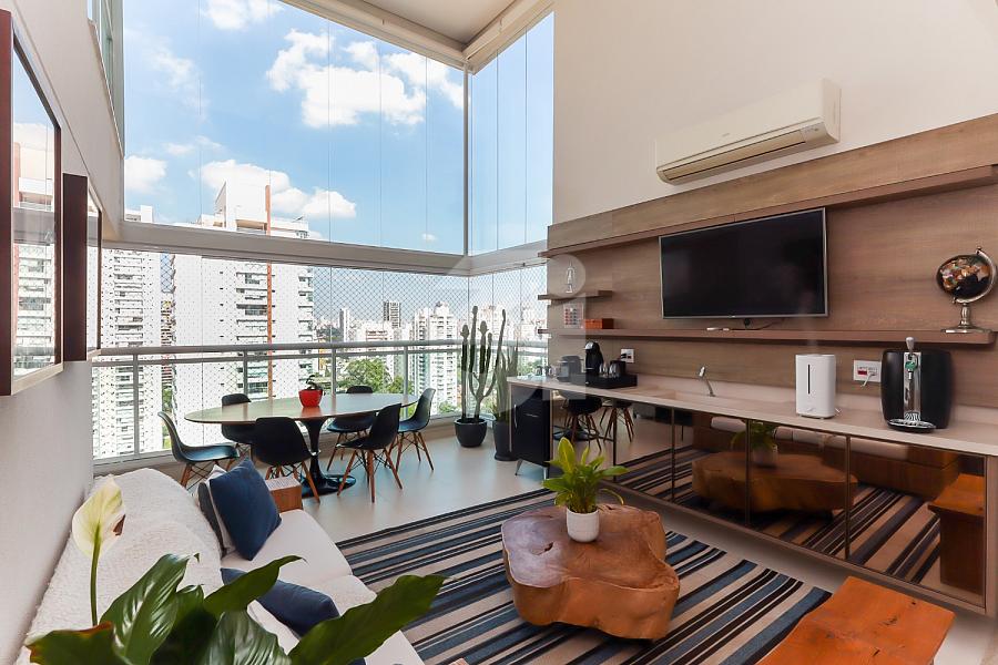 Apartamento para venda no Brooklin, com 185m², 3 dormitórios, sendo 3 suítes, a master com closet duplo. Living amplo, cozinha america e pé-direito duplo.