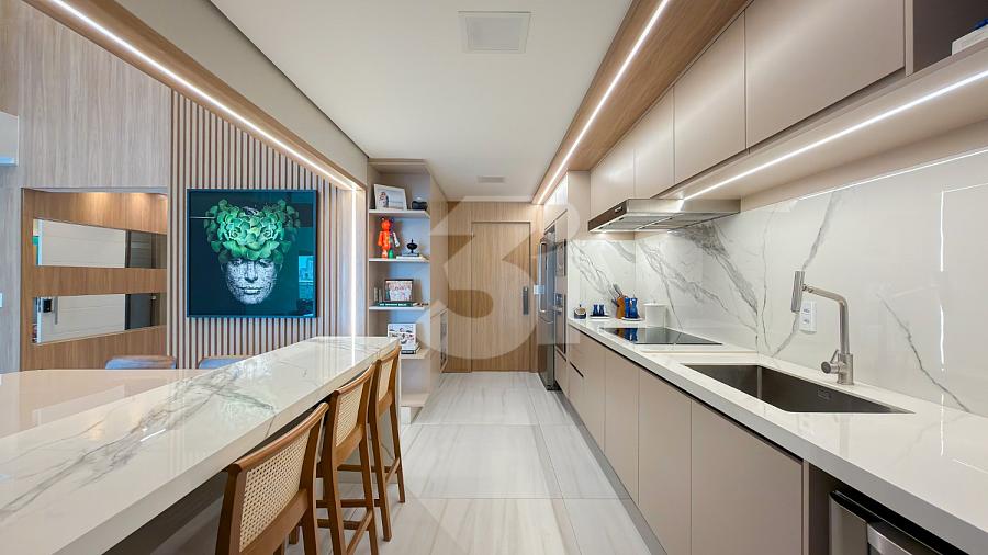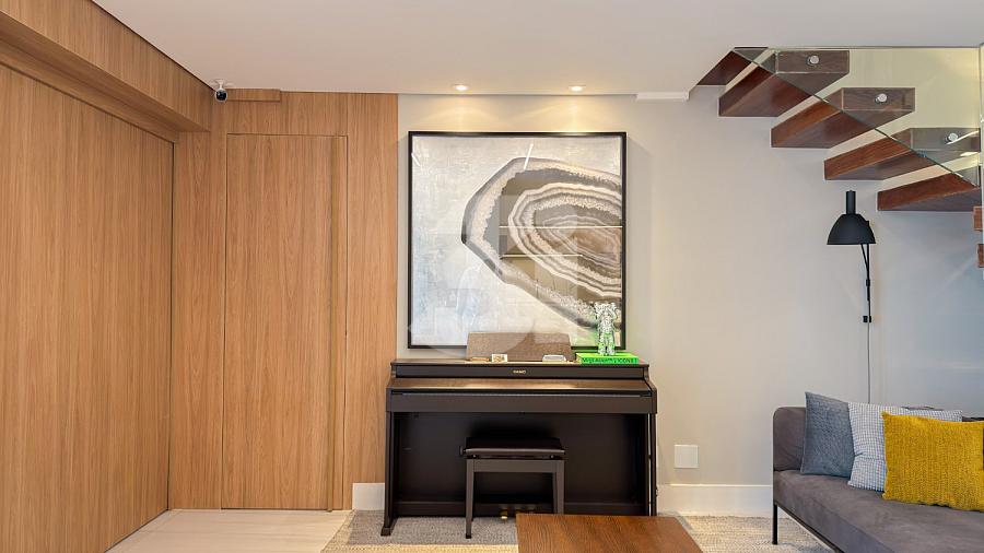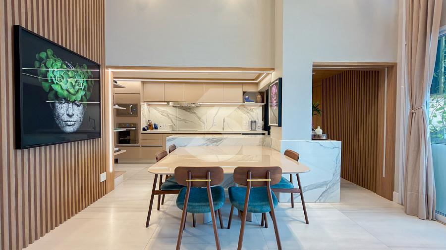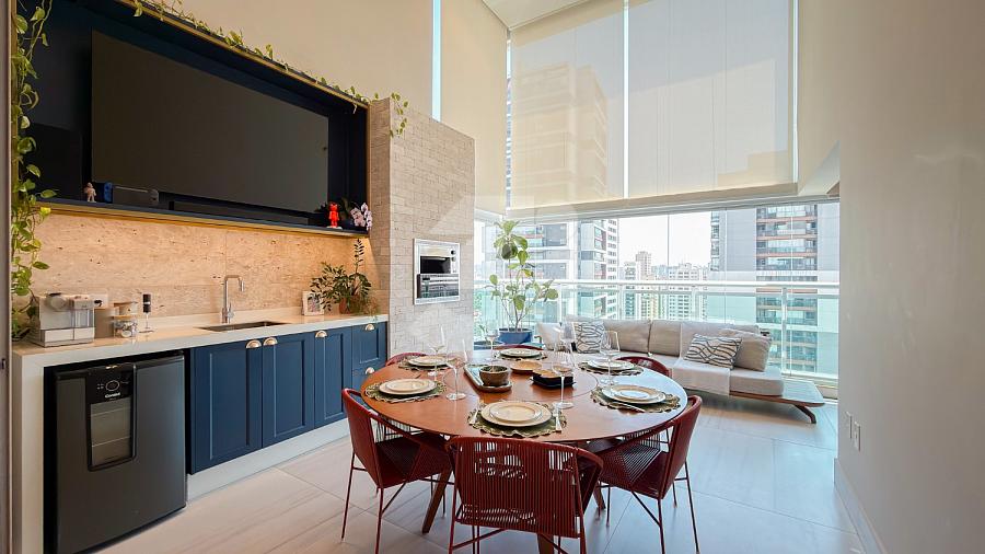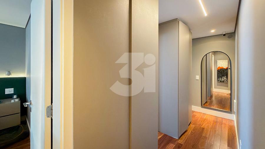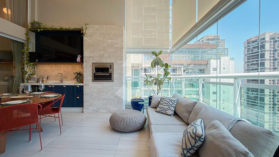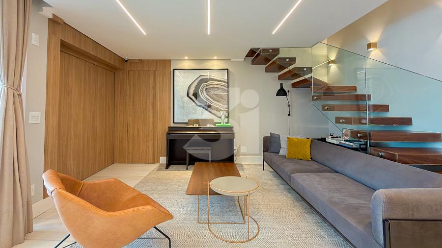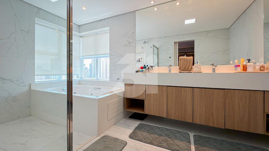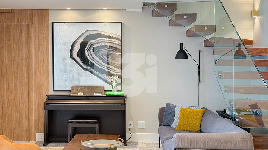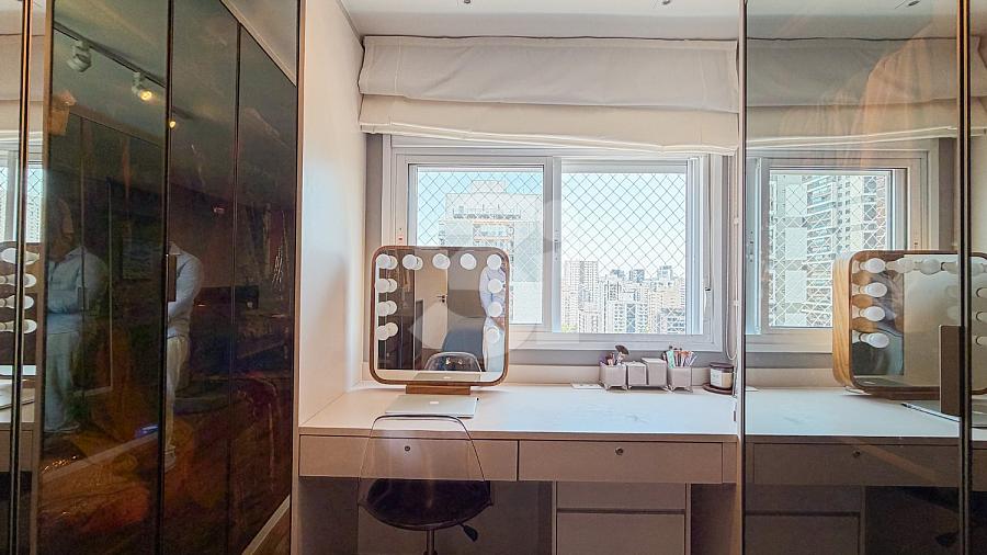 Apartamento à venda no Brooklin, com 197m², 4 dormitórios, sendo 4 suítes, living amplo, pé-direito duplo, sala de TV, mezanino com home office, cozinha americana e varanda.