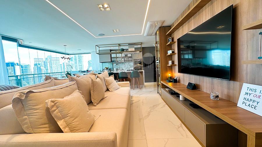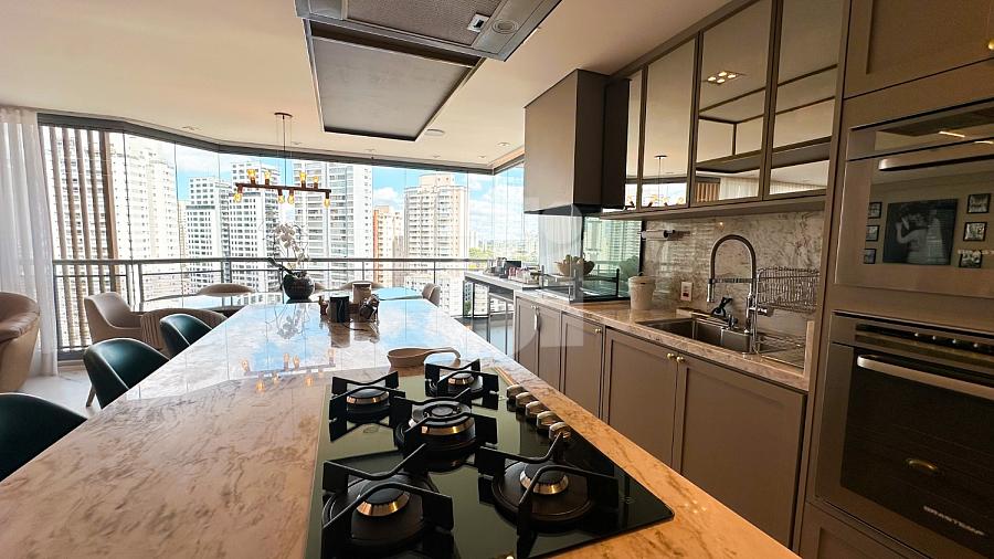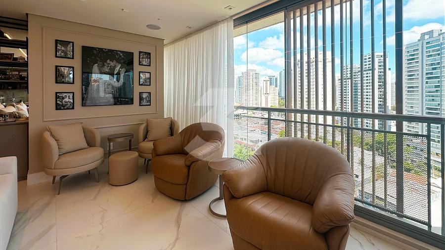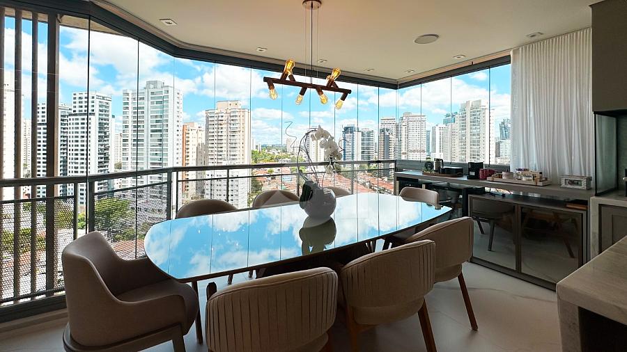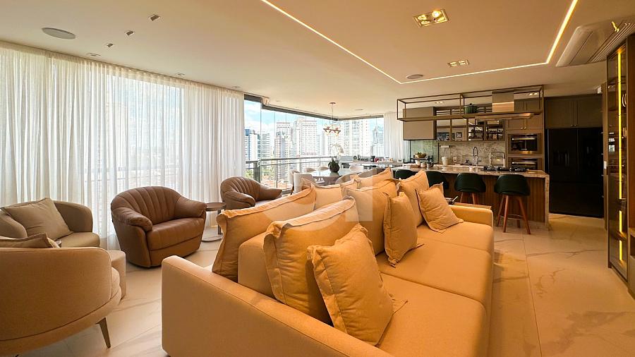 Apartamento para locação no Brooklin, com 168m², 3 dormitórios, sendo 3 suítes, 4 banheiros, living amplo, área externa com churrasqueira, e uma vista privilegiada.