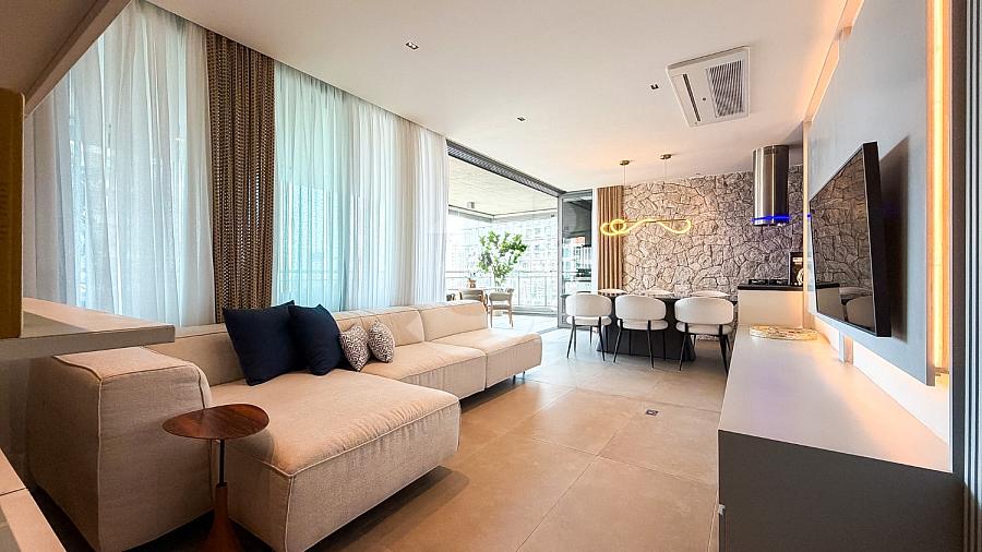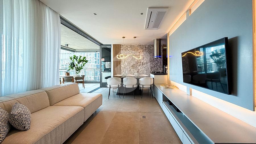 Apartamento para venda no Brooklin, com 167m², 3 dormitórios, sendo 3 suítes, 4 banheiros, living amplo, área externa com churrasqueira, e uma vista privilegiada.