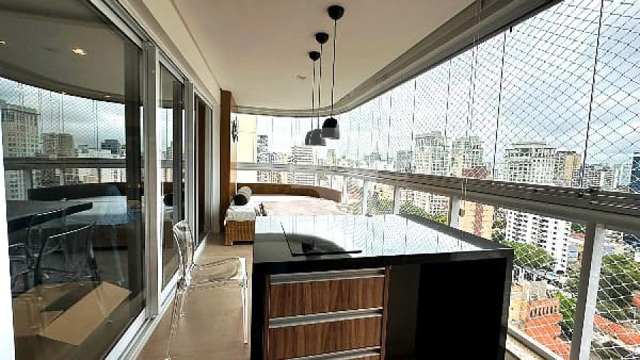 Apartamento para locação na Vila Olimpia, com 120m², completamente reformado, 2 dormitórios, sendo 2 suítes, cozinha com armários planejados, living ampliado e varanda gourmet com uma vista privilegiada.