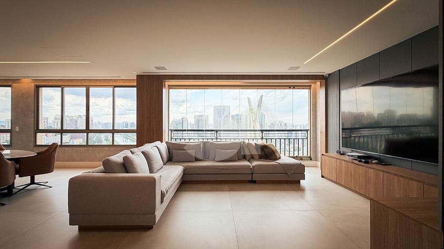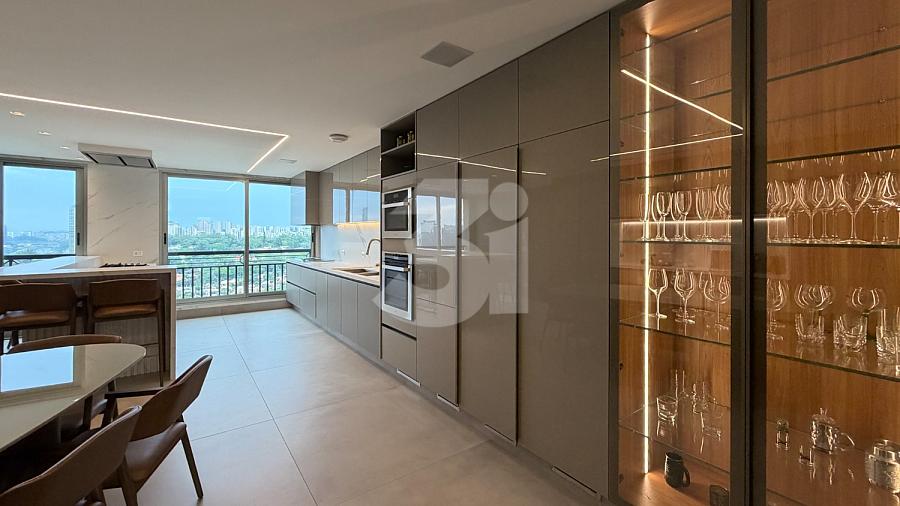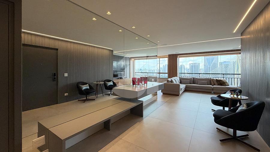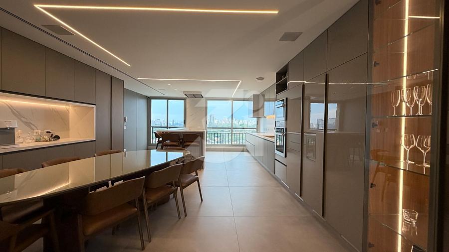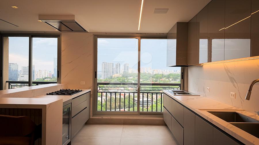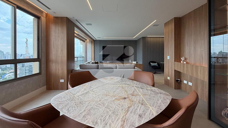 Apartamento para venda no Itaim Bibi, com 233m², 3 dormitórios, sendo 3 suítes, cozinha com armários planejados, sala de estar e jantar com uma vista privilegiada.