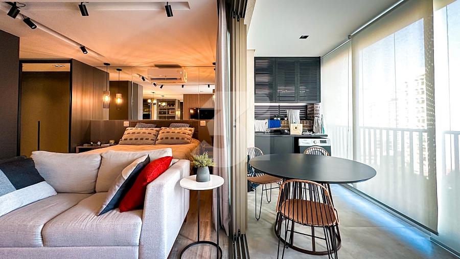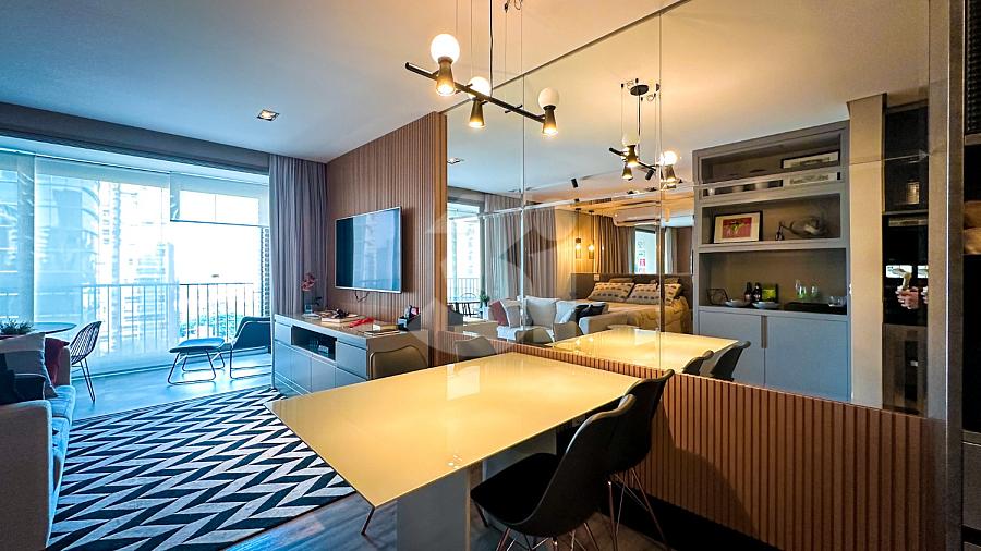 Apartamento para venda no Itaim Bibi, com 61m², living espaçoso, cozinha equipada, varanda com uma vista privilegiada.