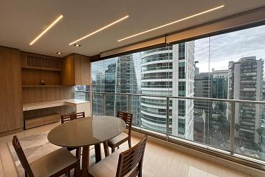 Apartamento mobiliado para locação na Vila Nova Conceição, com 65m², 1 dormitório, sendo 1 suíte, lavabo, living amplo, cozinha americana e varanda com uma vista privilegiada.