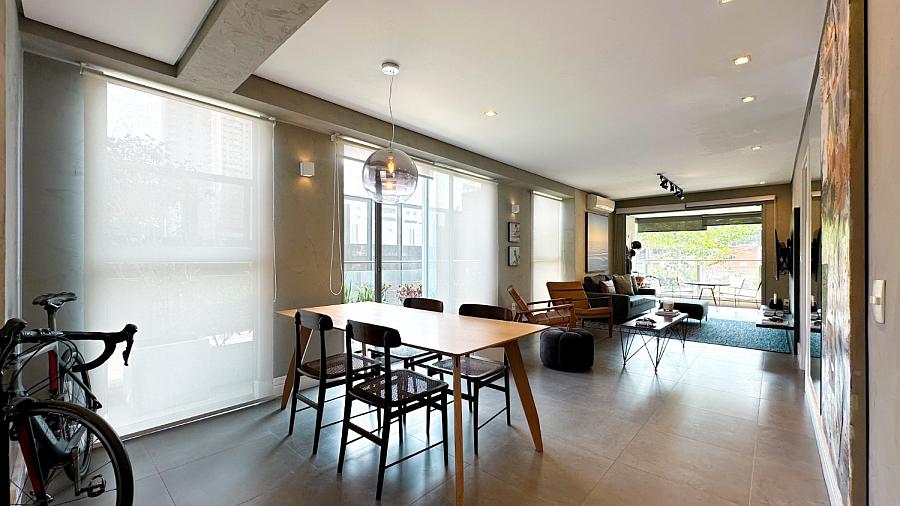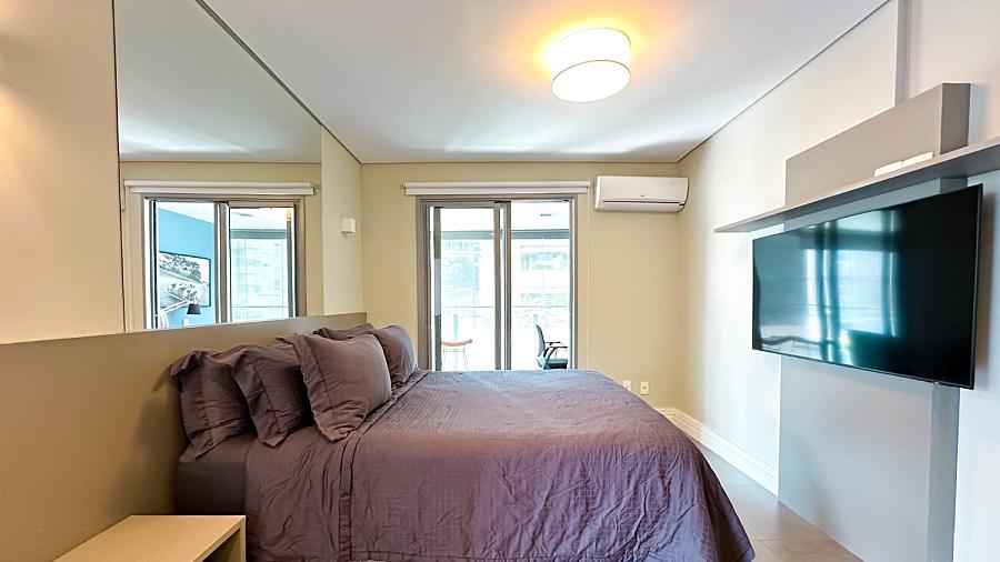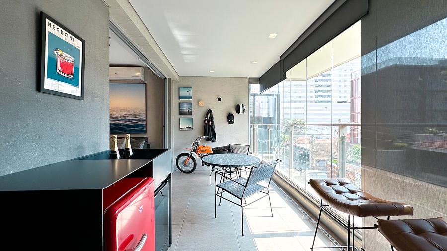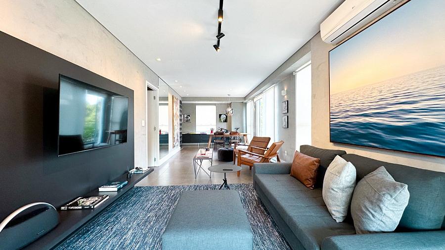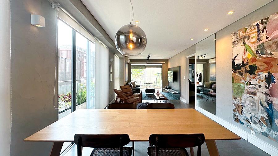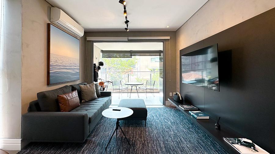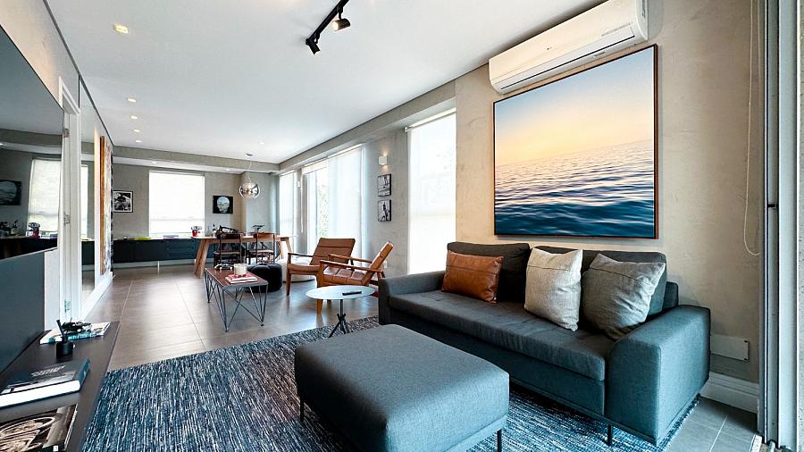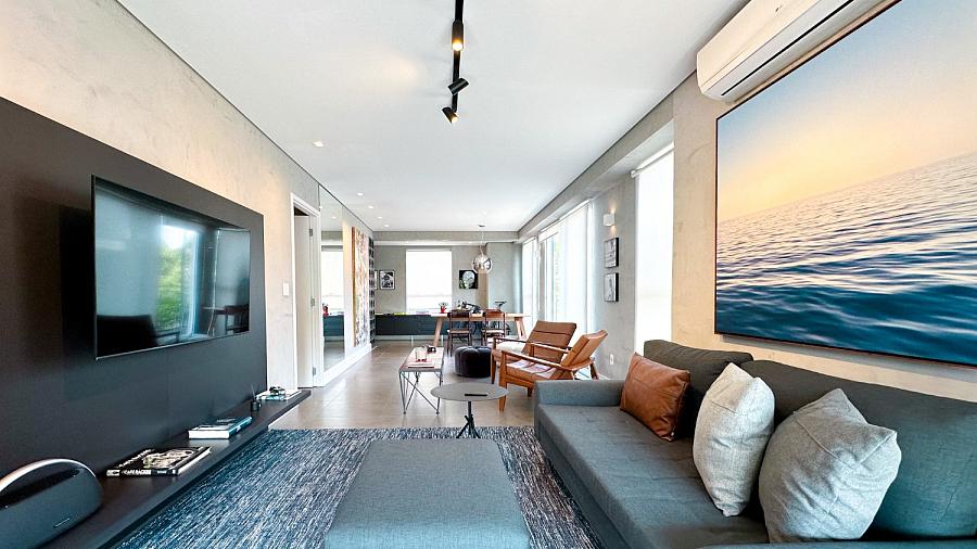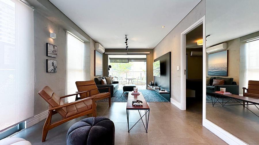Apartamento mobiliado para venda na Vila Nova Conceição, com 110m², 1 dormitório, sendo 1 suíte, lavabo, living amplo, cozinha americana e varanda com uma vista privilegiada.