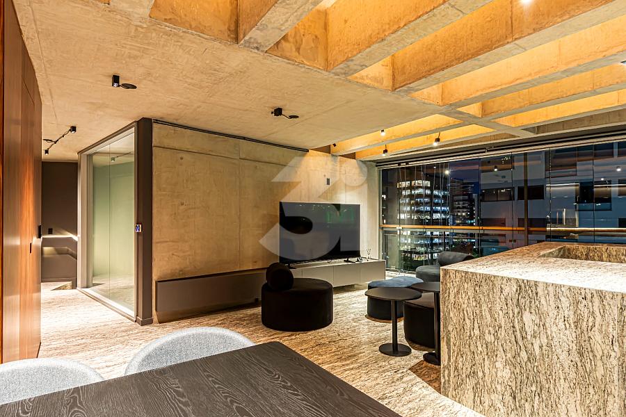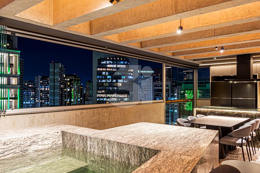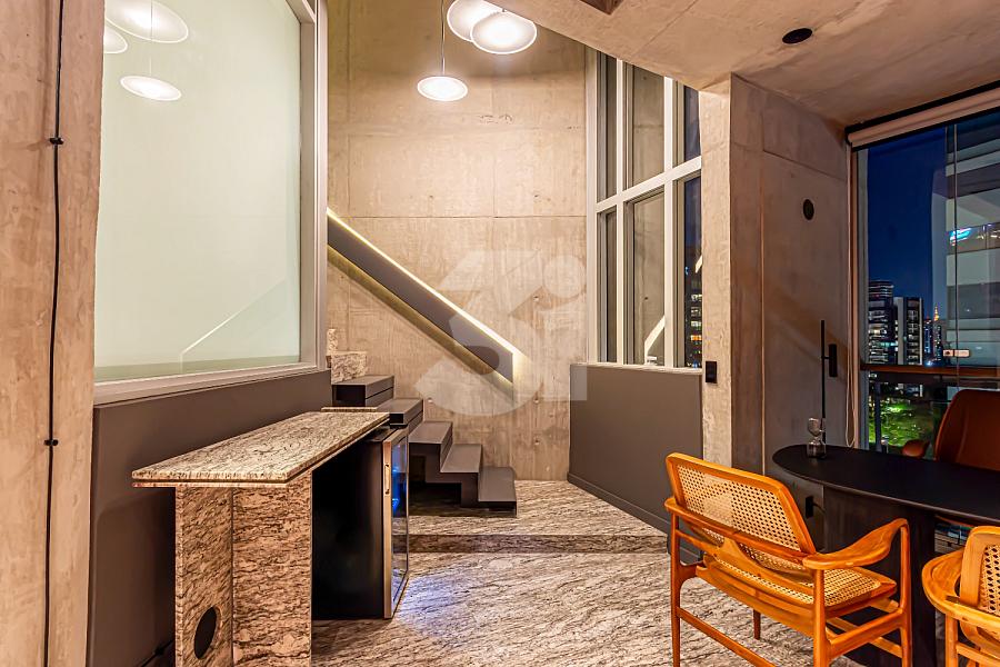 Cobertura duplex para venda no Itaim Bibi, com 145m², completamente reformado e mobiliado, com 2 dormitórios, sendo 2 suítes, living integrado, cozinha equipada e varanda com uma vista privilegiada.