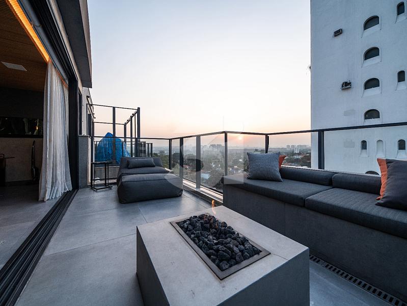 Cobertura para venda no Alto de Pinheiros, com 182m², 2 dormitórios, sendo 2 suítes, closet amplo, automação completa Savant Pro, B&W e Alexa, acabamentos com mármores Gris Armani, Nero Marquina, piso em madeira natural Tauari, forro em madeira natural ripada, espaço gourmet, área externa com lareira a gás com pedras vulcânicas, piscina privativa e uma vista privilegiada.