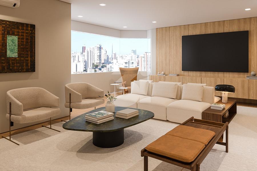 Cobertura Duplex para venda no Itaim Bibi, com 378m², living amplo, 4 suítes sendo 1 suíte master com closet e varanda, cozinha, Piscina com belíssimo paisagismo, Espaço Gourmet com churrasqueira, Living Externo, Sauna, Sala íntima de TV,  Espaço Adega e Lareira.