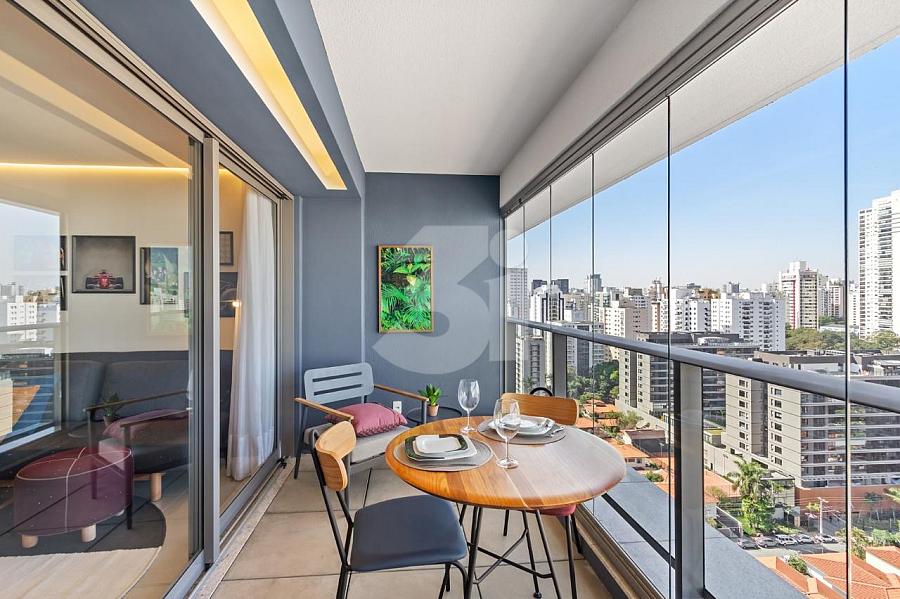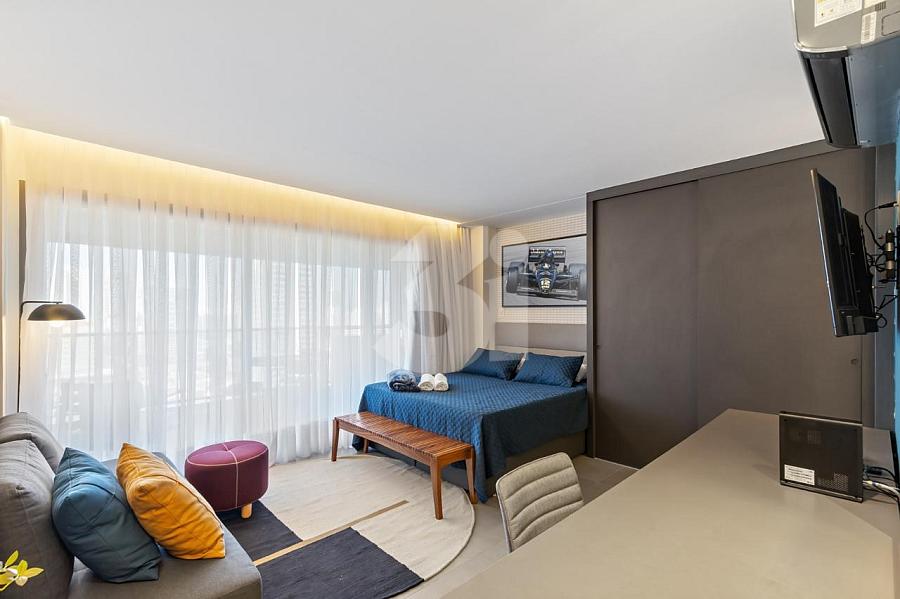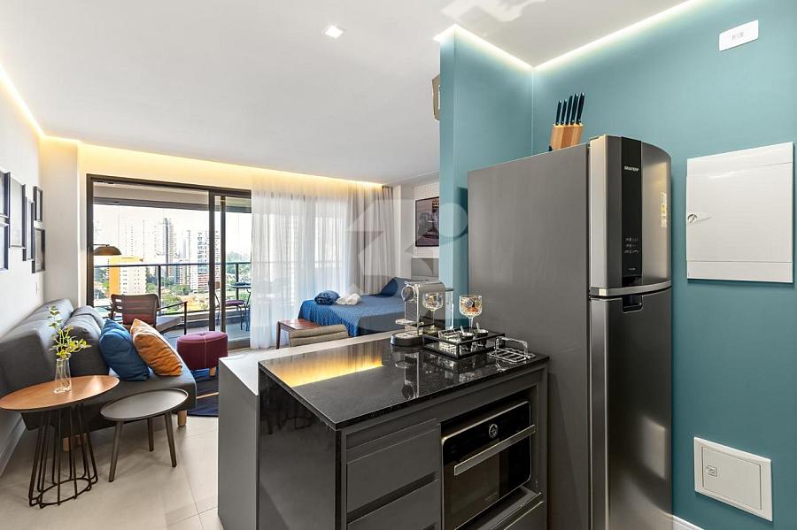 Studio à venda no Brooklin com 43m², 1 dormitório, varanda e uma vista privilegiada.